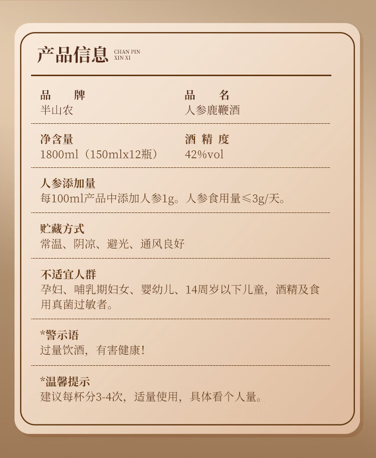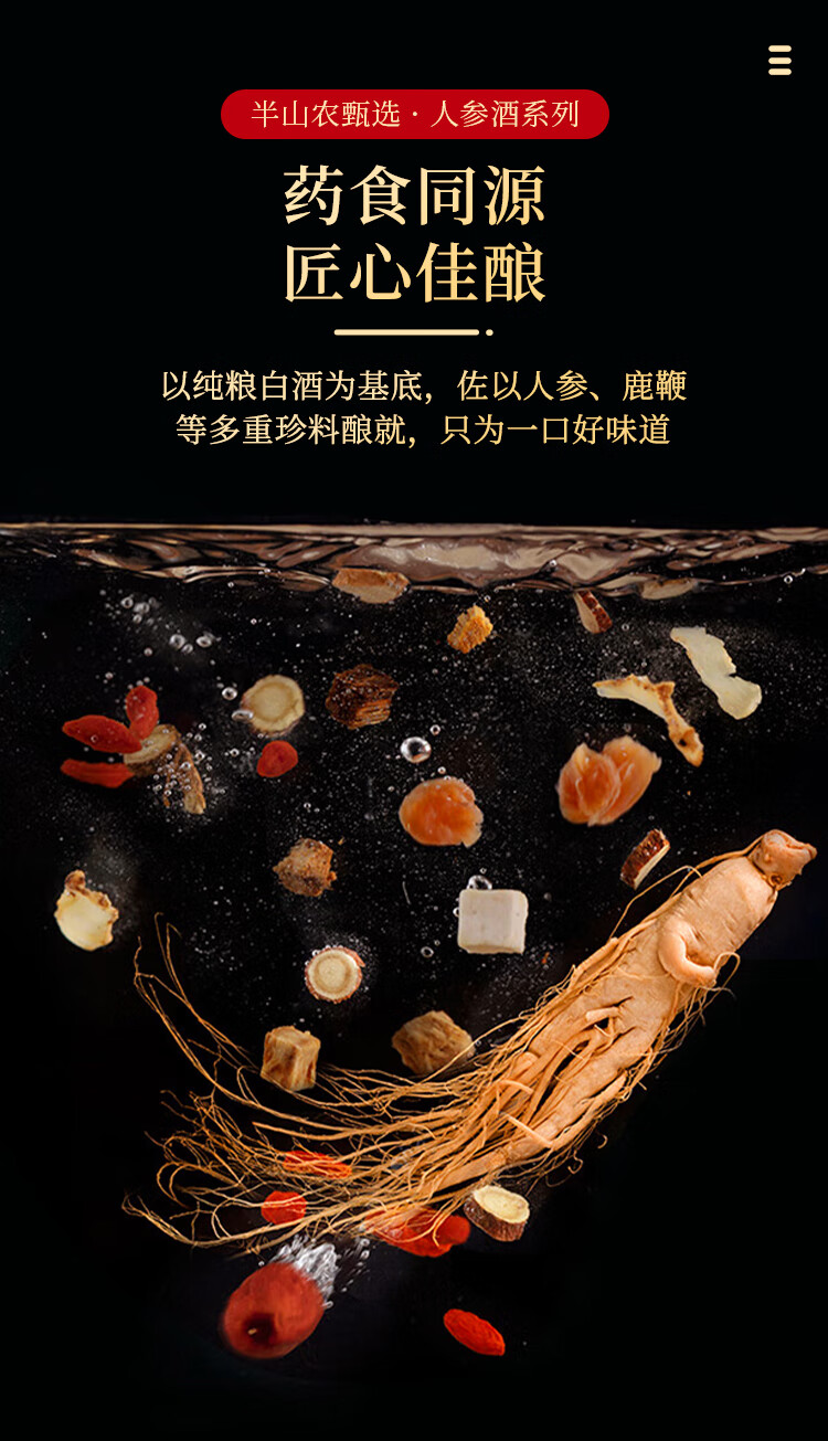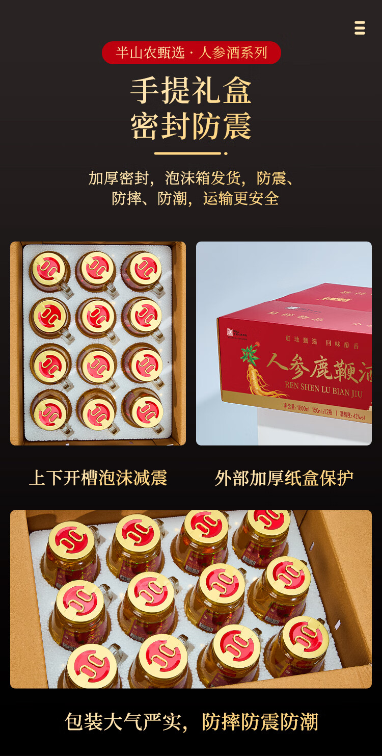 半山农 人参鹿鞭酒 42度 枸杞鹿鞭鹿茸酒 补品 150ml*12瓶 整箱装