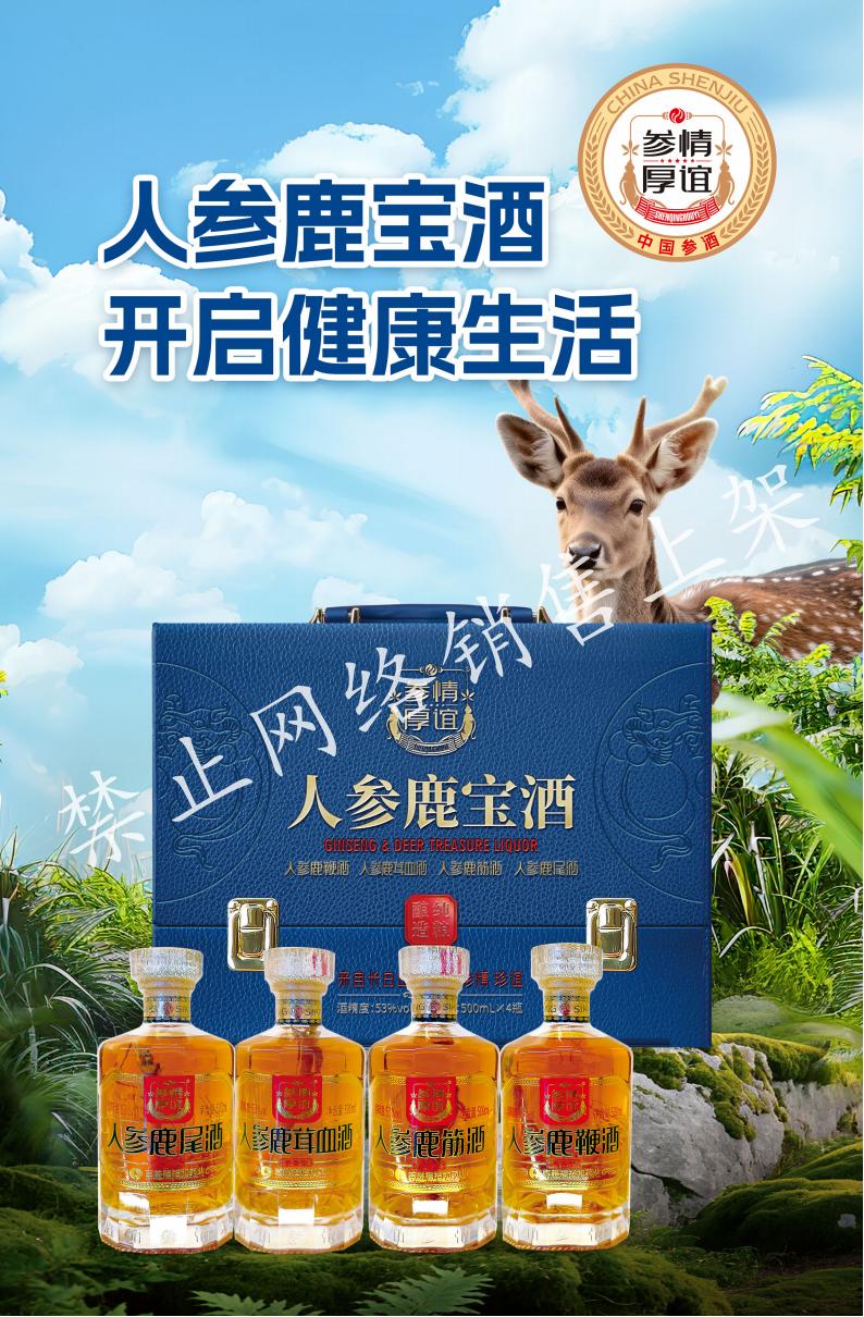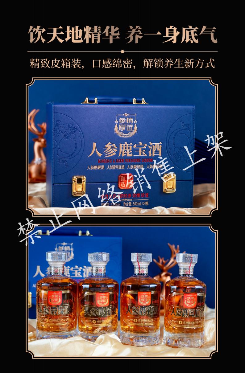 人参鹿宝酒蓝色 整箱装 禁止网络销售上架 53度 过节送礼佳品 500ml*4瓶*2提 整箱装