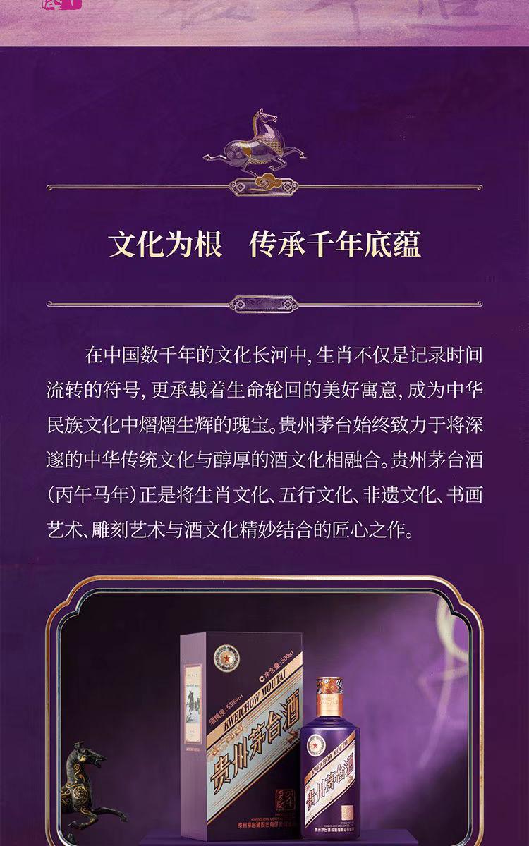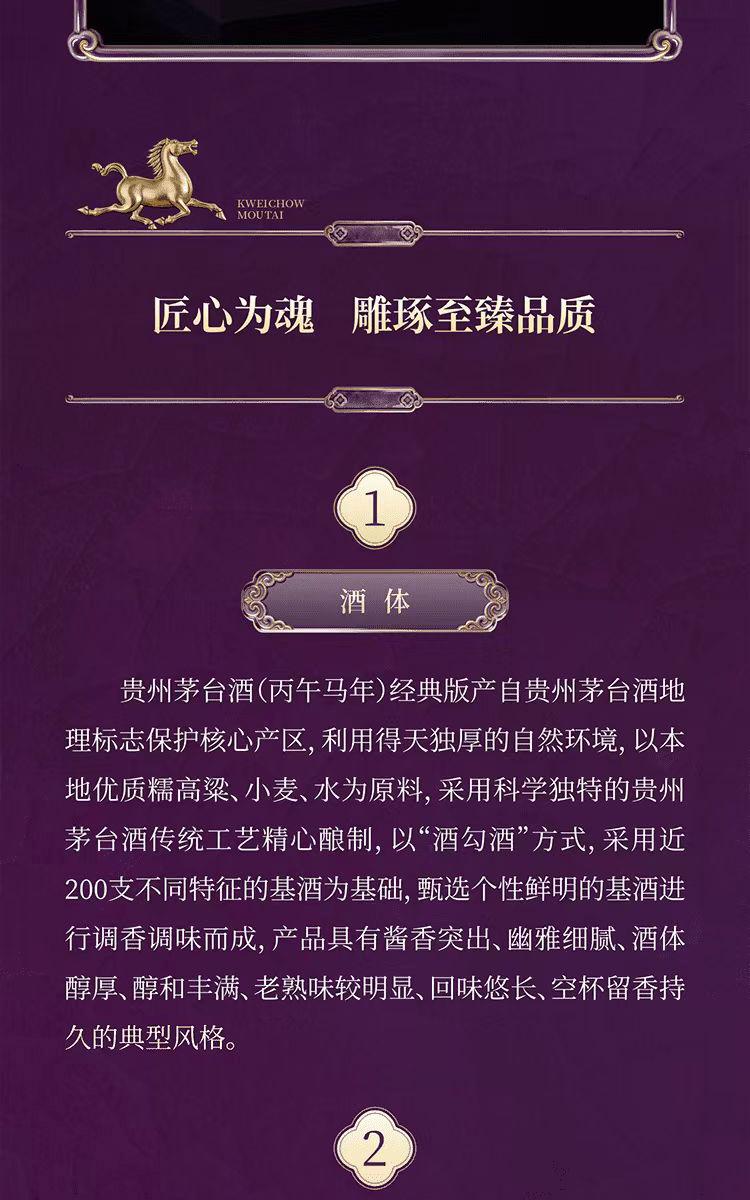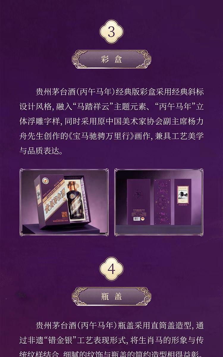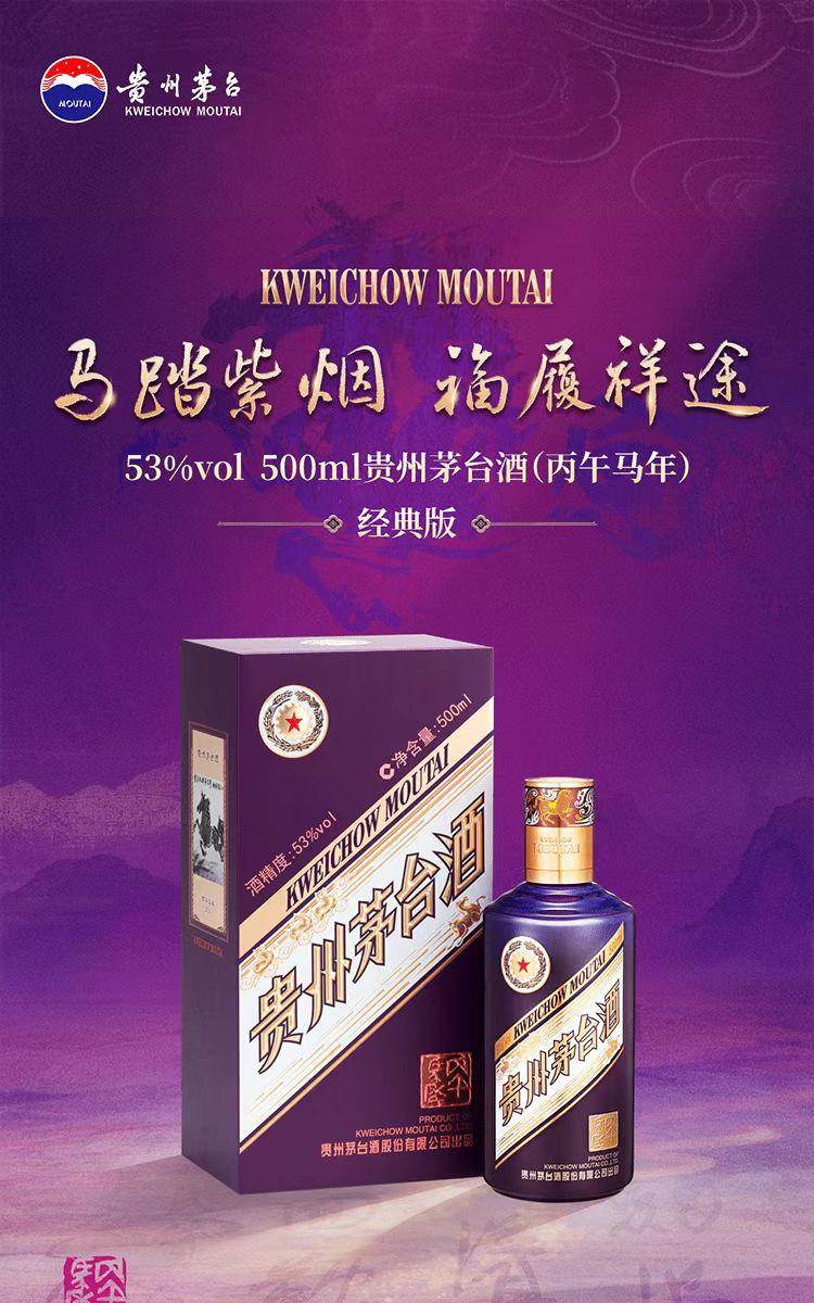 贵州茅台酒 丙午马年 经典版 53%vol 酱香型白酒 2026年 收藏 摆柜 送礼 宴请 500mL*1瓶 单瓶