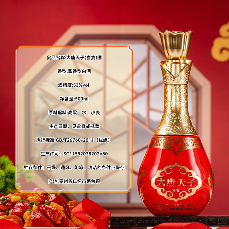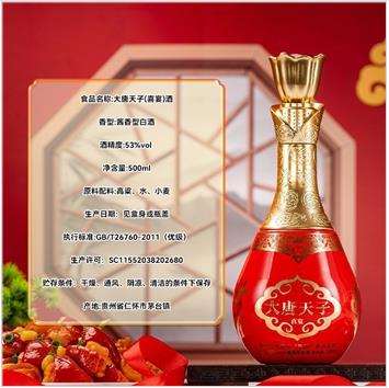 大唐天子喜宴 53%vol 酱香型白酒 婚礼 寿宴 商务接待 聚会宴请 500ml*6瓶 整箱装