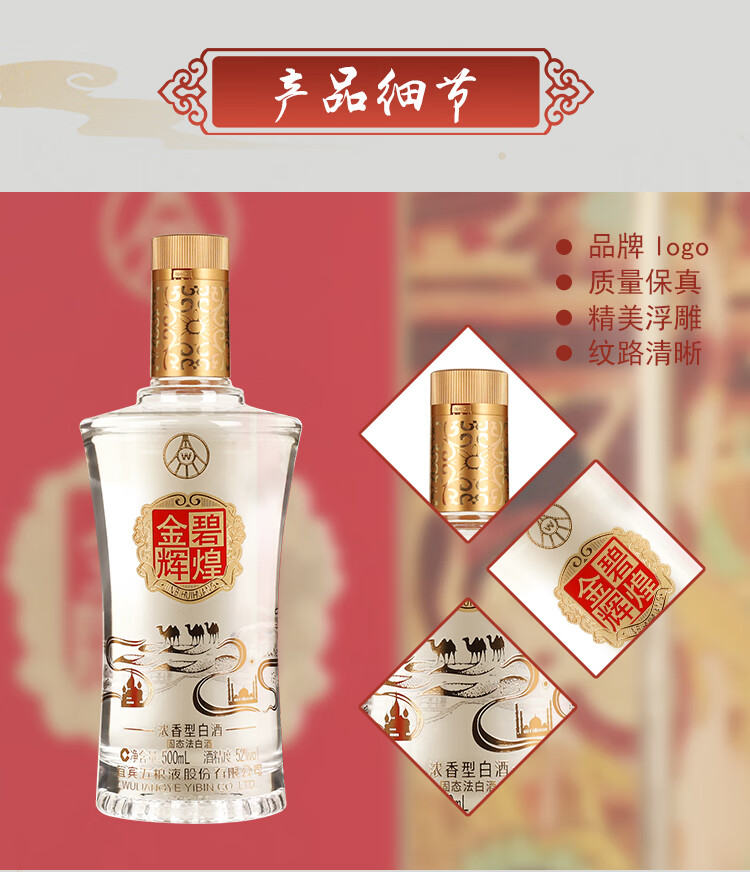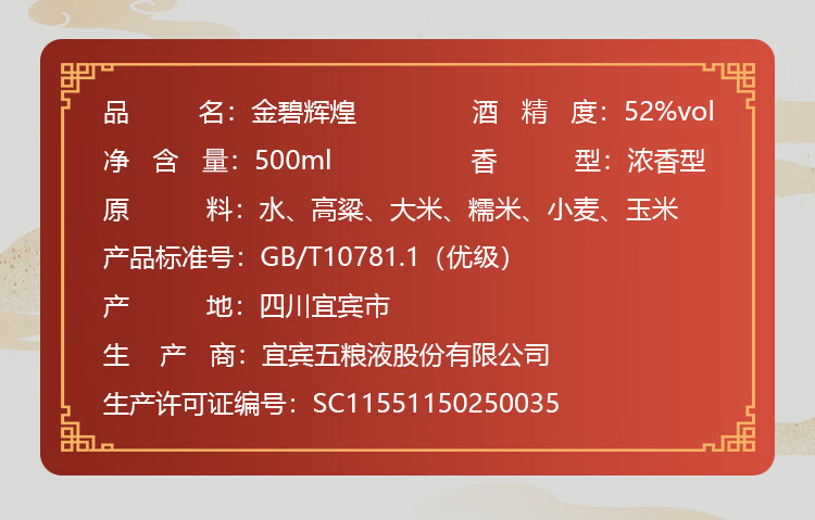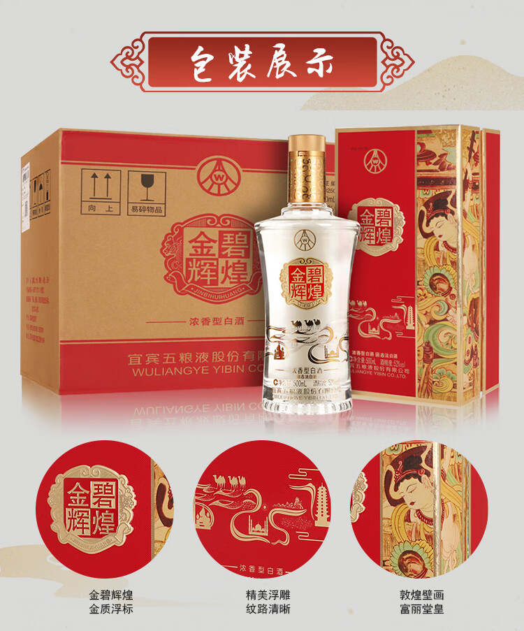 五粮液金碧辉煌 52度 浓香型高度白酒 自用收藏 过节送礼 500mL*6瓶 整箱