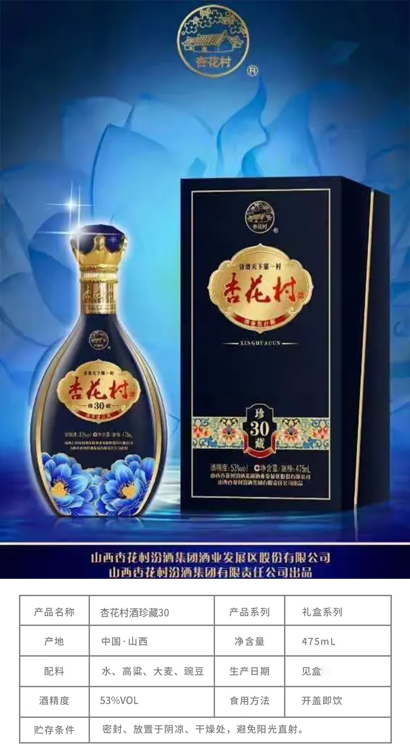 杏花村酒 珍藏30 53度 清香型粮食酒 收藏送礼 475mL*6盒 整箱装