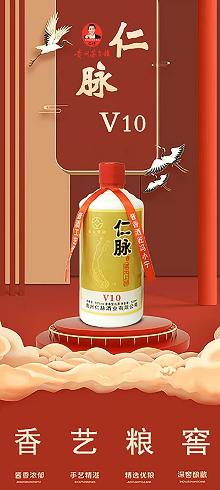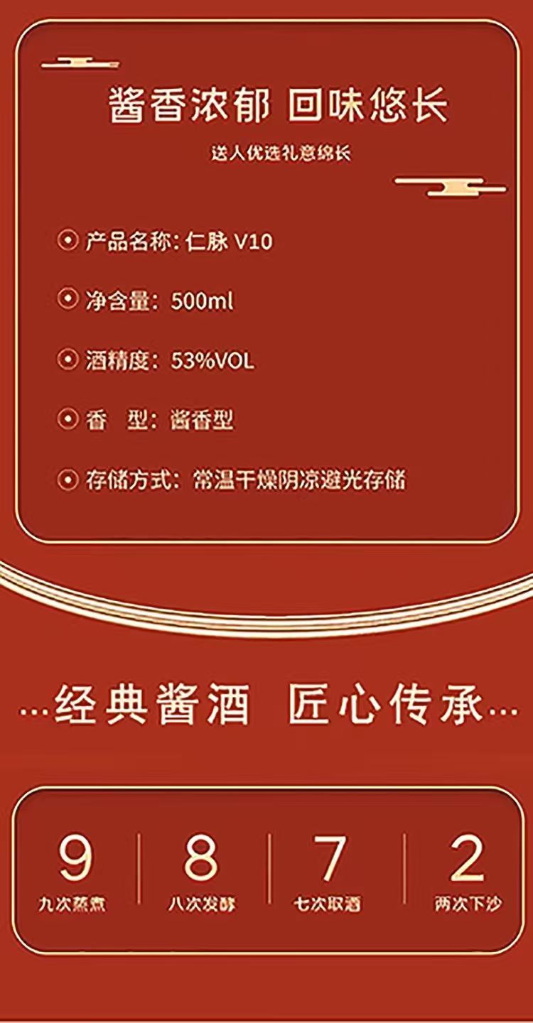 仁脉酒 瀛元上品 53%vol 酱香型白酒 500ml*6瓶 整箱装