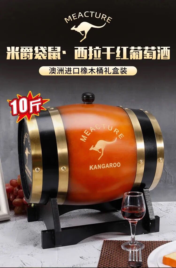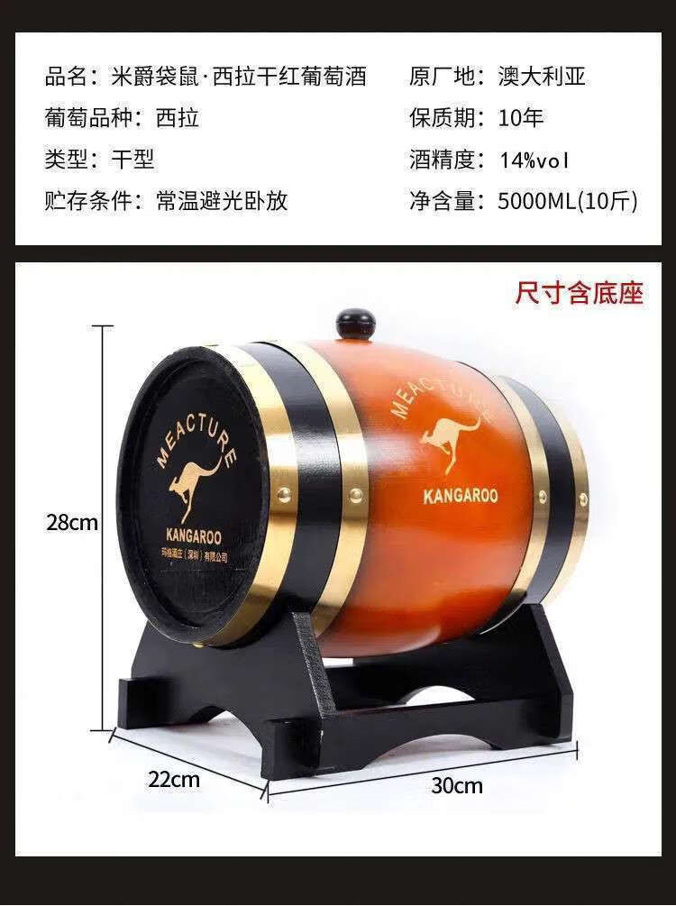 米爵袋鼠 西拉干红葡萄酒 14%vol 澳大利亚进口红酒 5000ml*1桶 整箱