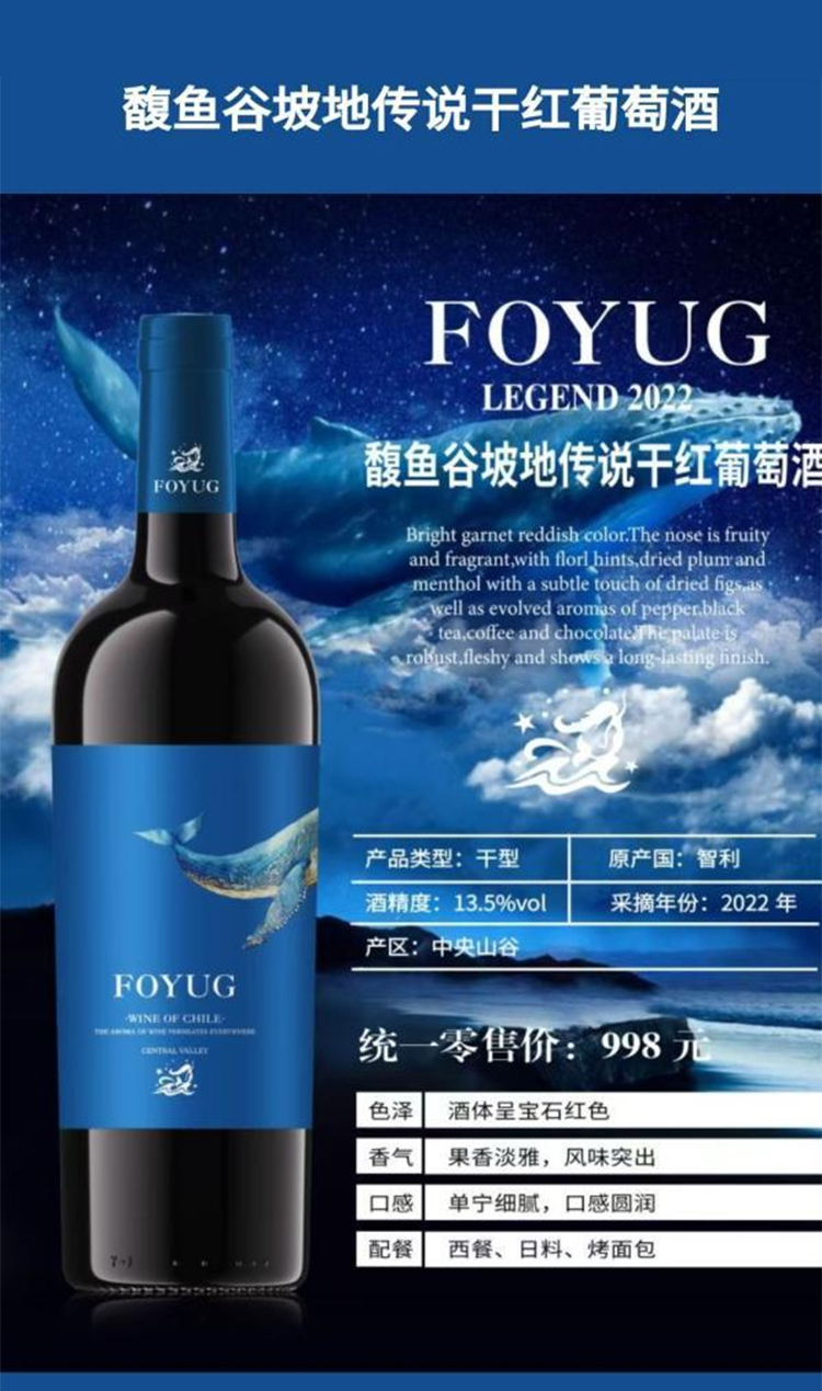 馥鱼谷坡地传说干红葡萄酒 13.5%VOL 智利进口 750ml*6瓶 整箱装