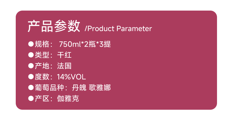 卡隆达 仰慕干红葡萄酒 14%VOL 法国进口 750ml*2瓶*3提 整箱装