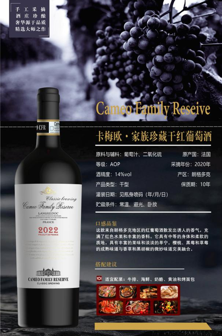 卡梅欧 家族珍藏干红葡萄酒 15%VOL 法国进口 750ml*6瓶 整箱装