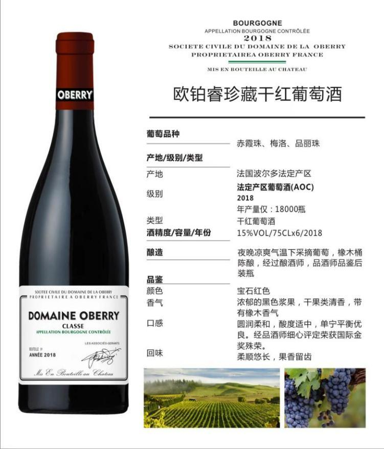 欧铂睿珍藏干红葡萄酒 15%vol 法国进口红酒 750ml*6瓶 整箱装