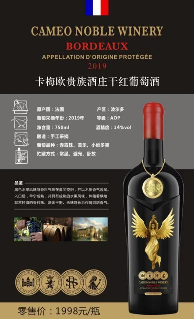 卡梅欧贵族酒庄干红葡萄酒 14%vol 法国进口红酒 750ml*6瓶 整箱装