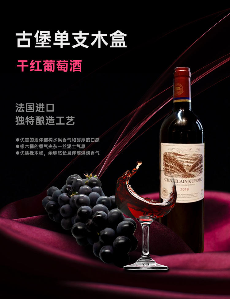 古堡单支木盒 干红葡萄酒 14%VOL 法国进口 750ml*6瓶 整箱装