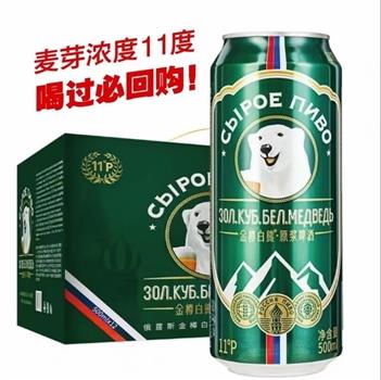 金樽白熊 精酿原浆啤酒 德国罐装 口感丰盈精酿啤酒泡沫细腻 原麦汁浓度11°P 酒精度≥4.1%vol 500ML*12罐 整箱 50箱起拍