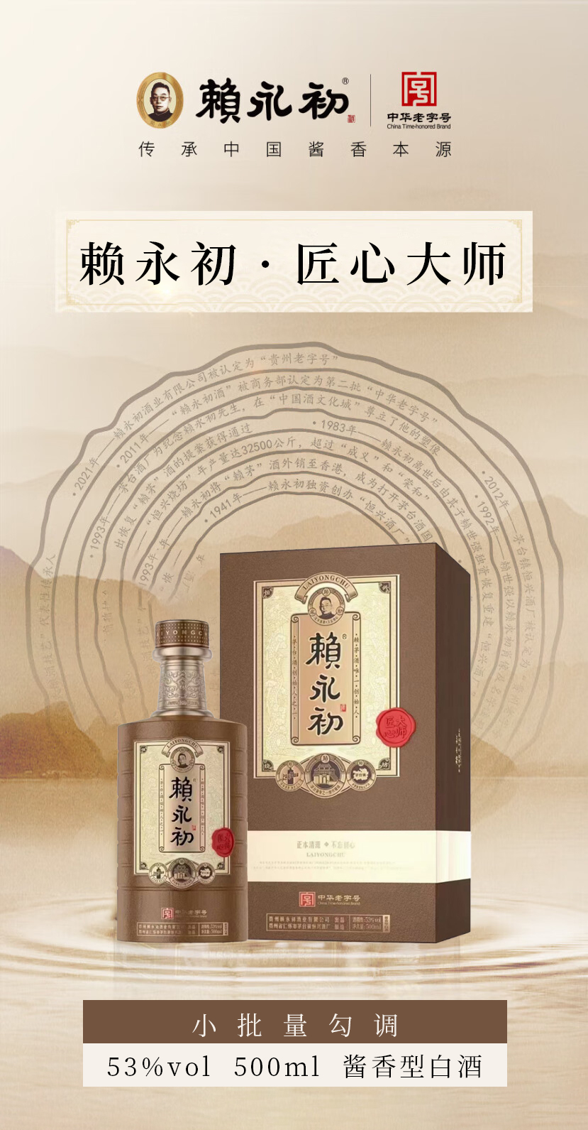 赖永初 匠心大师酒 酱香经典高端白酒 酱香型白酒 53度 500ml*6 整箱