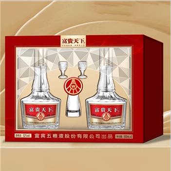 五粮液股份 富贵天下 财运装 浓香型白酒 52度 500mL*2瓶*3盒 整箱装