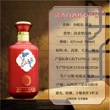 山西杏花村 杏铭泉 喜宴 清香型白酒 42度 500ml*6瓶 整箱