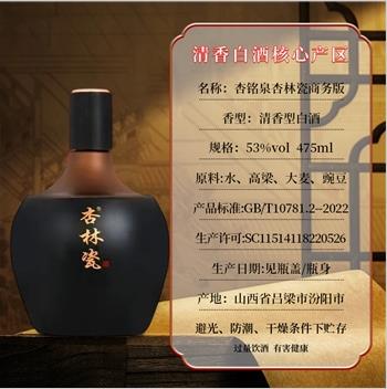 山西杏花村 杏铭泉 杏林瓷商务版 清香型白酒 53度 475ml*6瓶 整箱