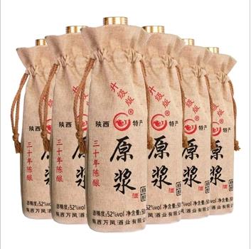 陕西 万凤 原浆30年(绿瓶布袋)30年陈酿粮食酒 凤香型白酒 52度 500ml*6 整箱