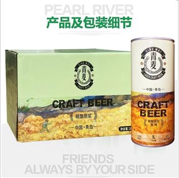 青岛 青麦黄啤 原麦汁浓度12°P 酒精度≥4.5%VOL 1L*6罐 整箱 20箱起拍