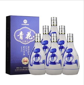 山西杏花村 青花50 42度 清香型白酒 自饮聚会粮食酒 475ml*6瓶 整箱