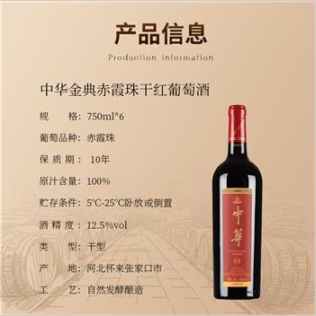 中華金典 赤霞珠干红葡萄酒 12.5%VOL 750ml*6支 整箱