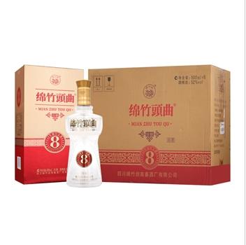 四川绵竹剑南春酒厂出品 绵竹头曲 珍酿8 52度 浓香型白酒 收藏自饮 500ml*6瓶 整箱
