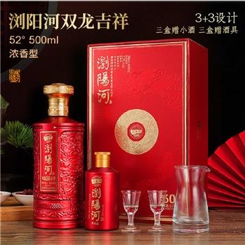 浏阳河 双龙吉祥 52度 浓香型白酒 匠心匠造 纯粮浓香 500ml*6瓶 整箱