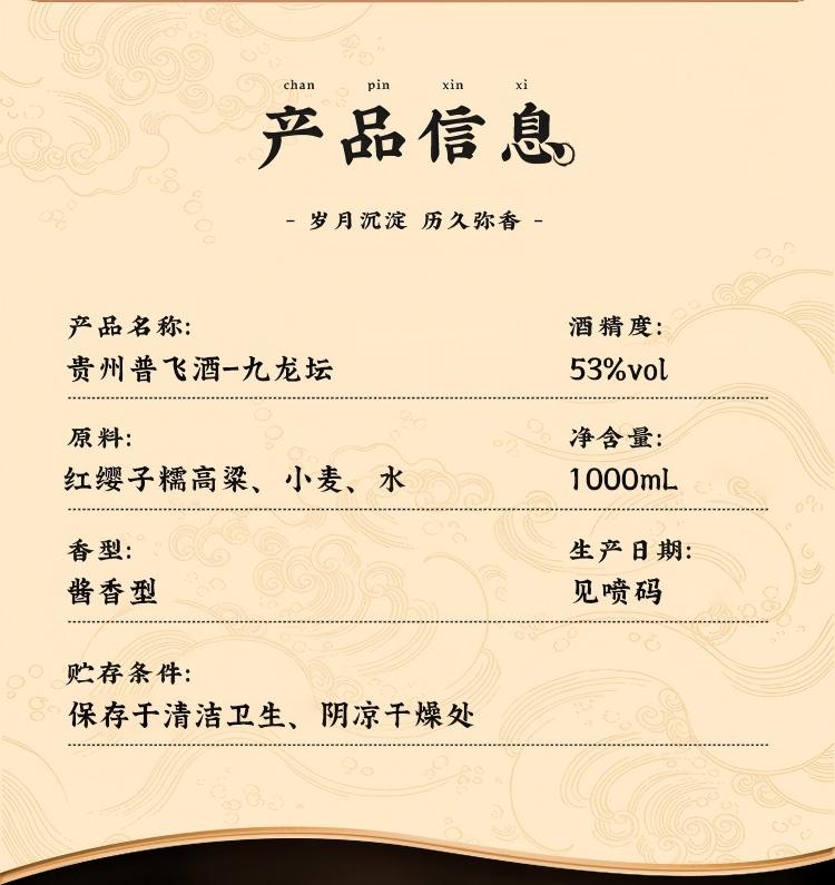 贵州普飞酒 九龙坛 53度 酱香型白酒 送礼收藏自饮 1000ml*4瓶 整箱装