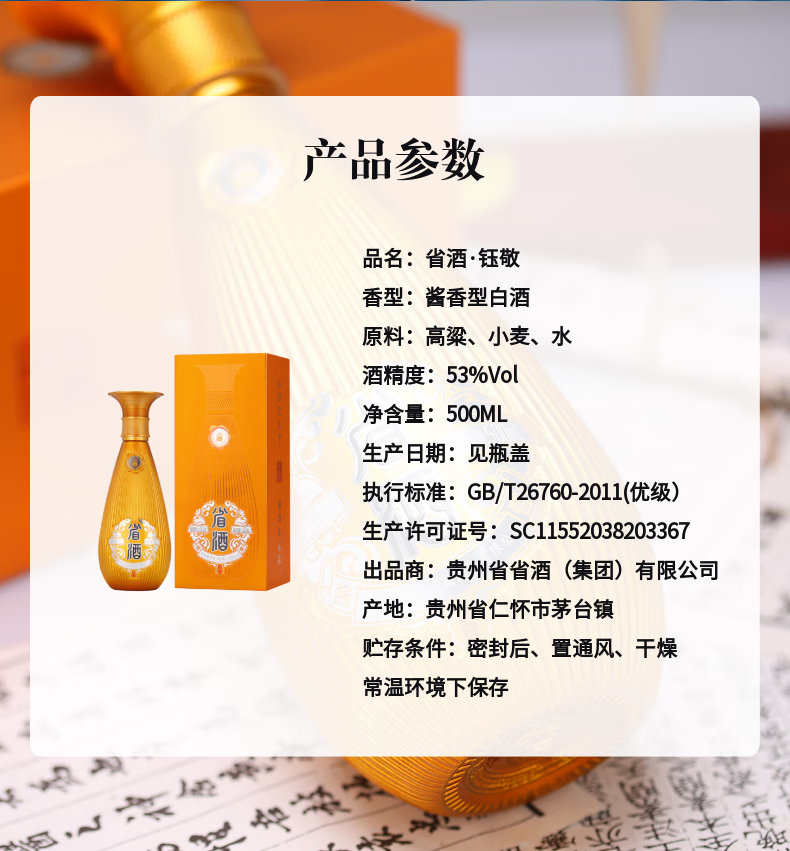 贵州茅台镇 省酒 钰敬 53度 酱香型白酒 纯粮酿造 送礼宴请 500ml*6瓶 整箱