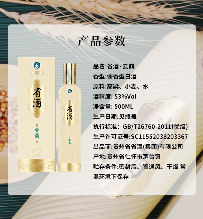 贵州茅台镇 省窖 云鼎 53度 酱香型白酒 纯粮酿造 送礼宴请 500ml*6瓶 整箱