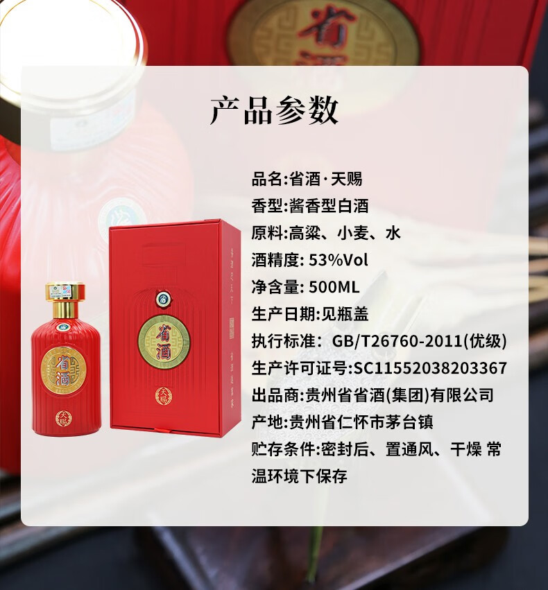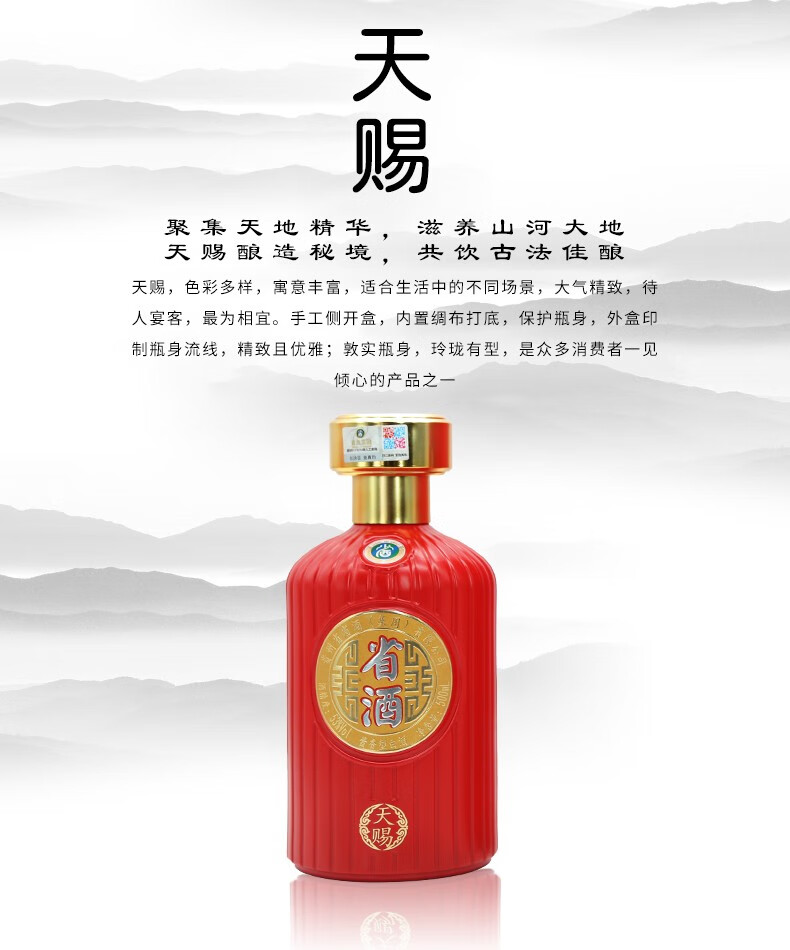 贵州茅台镇 省酒 天赐 53度 酱香型白酒 纯粮酿造 送礼宴请 500ml*6瓶 整箱