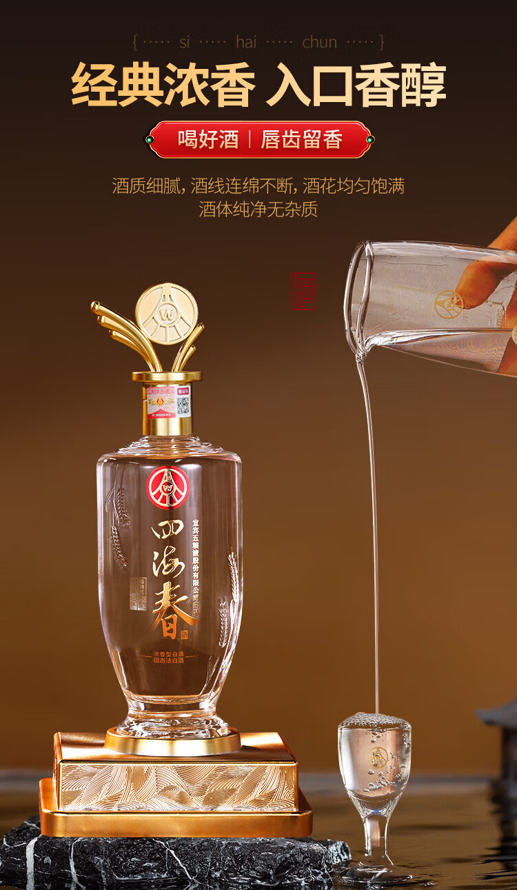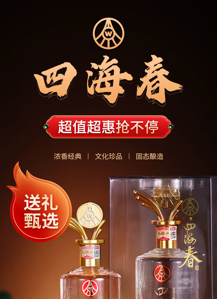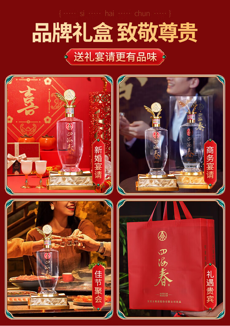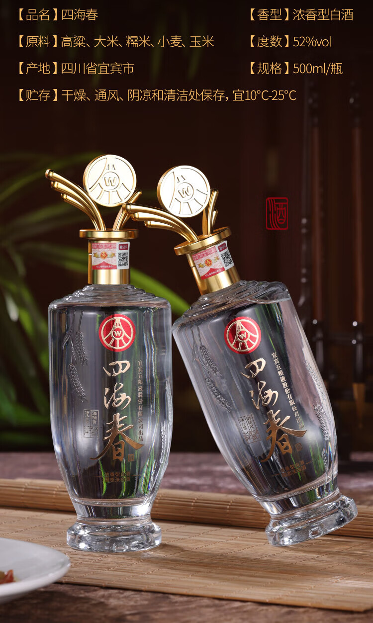 五粮液股份公司出品 四海春 风华礼盒 52度 浓香型白酒 送礼宴请 500ml*6瓶 整箱