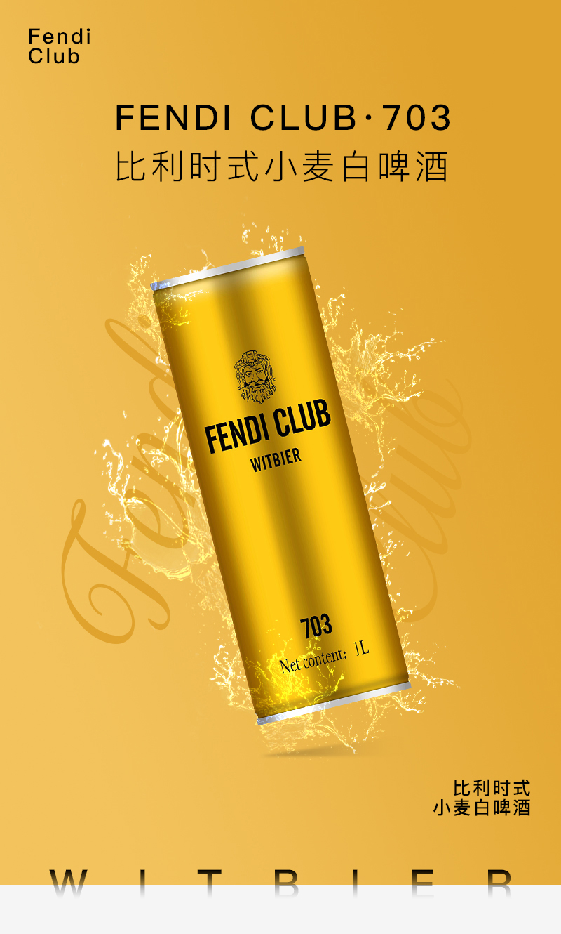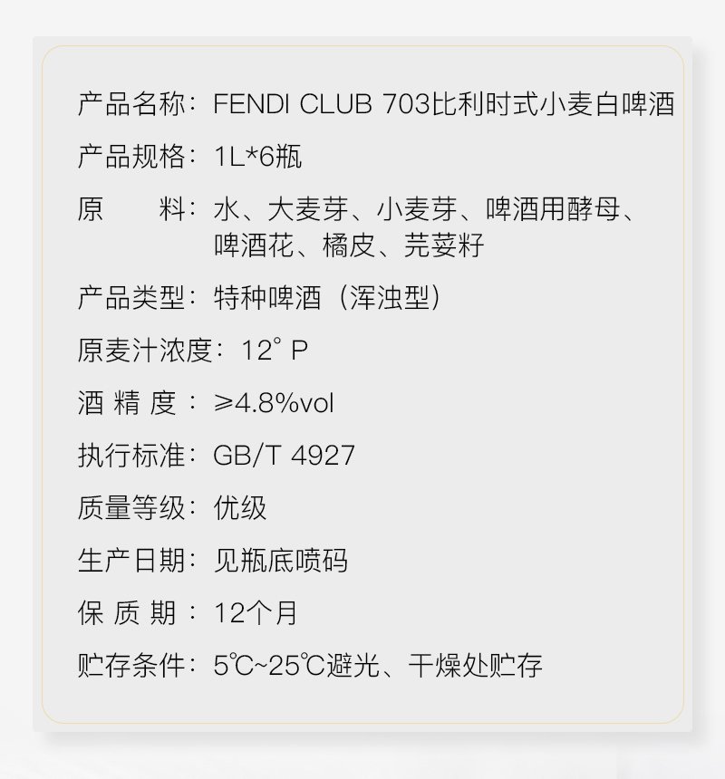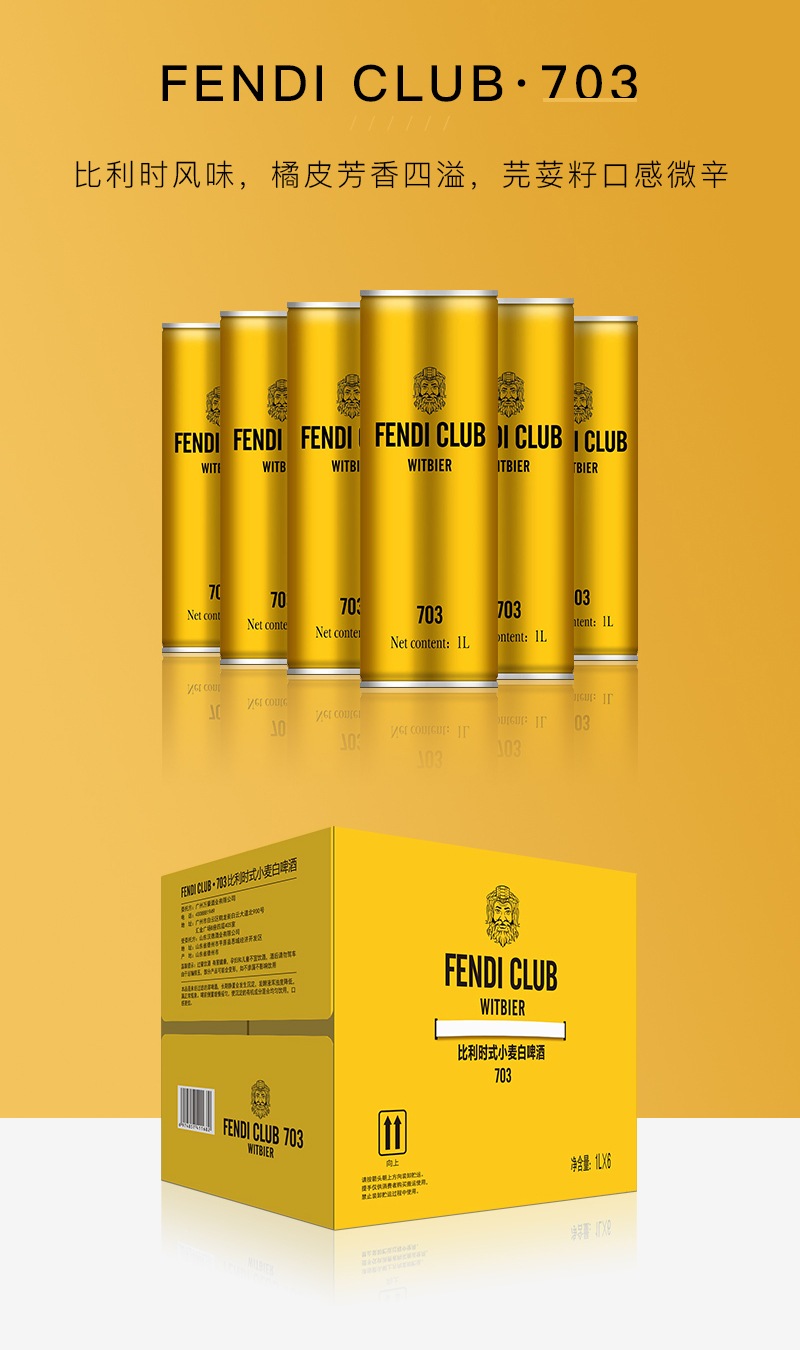 FENDI CLUB 703比利时式小麦白啤酒 原麦汁浓度12°P 酒精度≥48%VOL 1L*6瓶 整箱