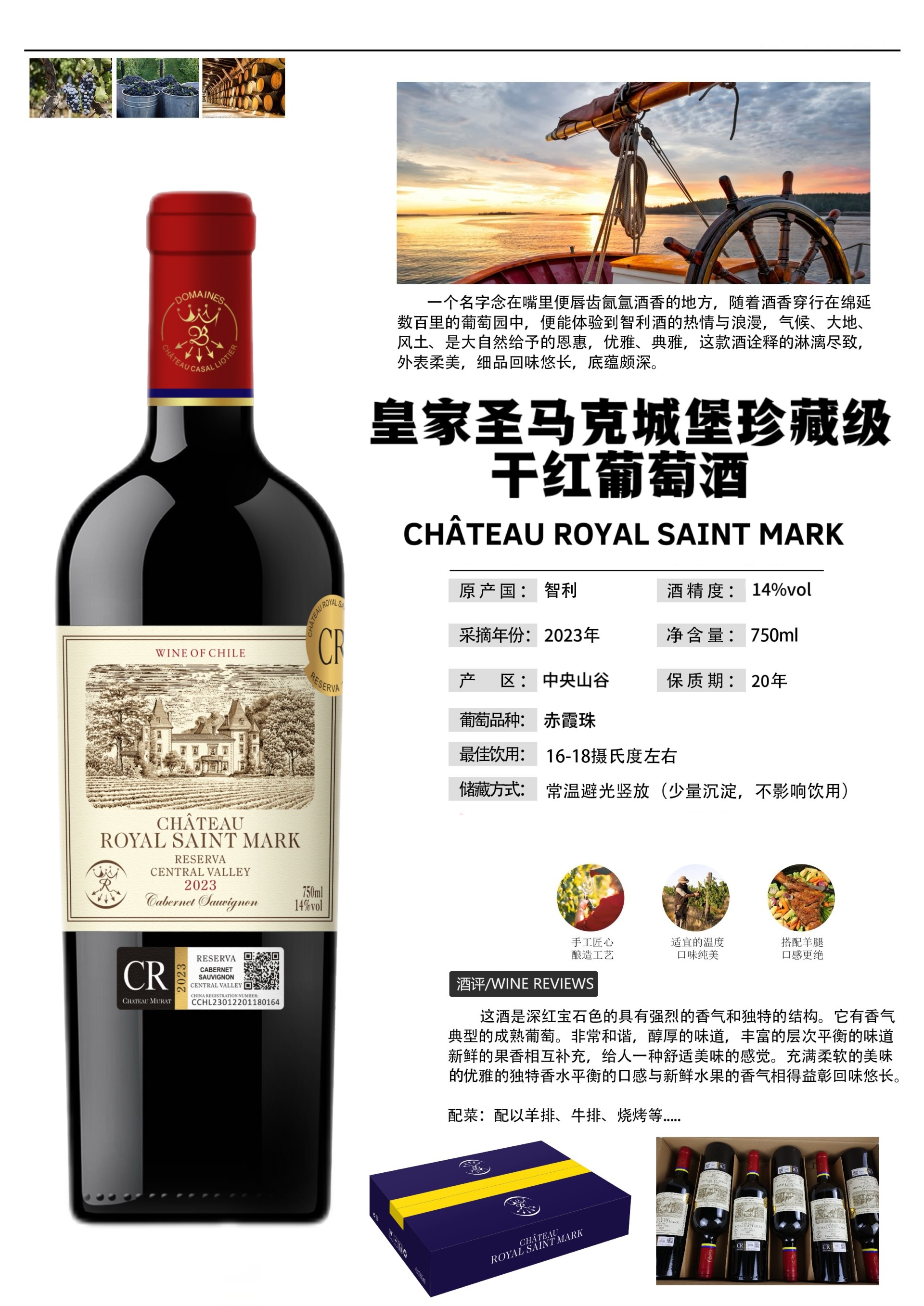 皇家圣马克城堡 珍藏级 干红葡萄酒 14%VOL 智利进口 750ml*6支 整箱