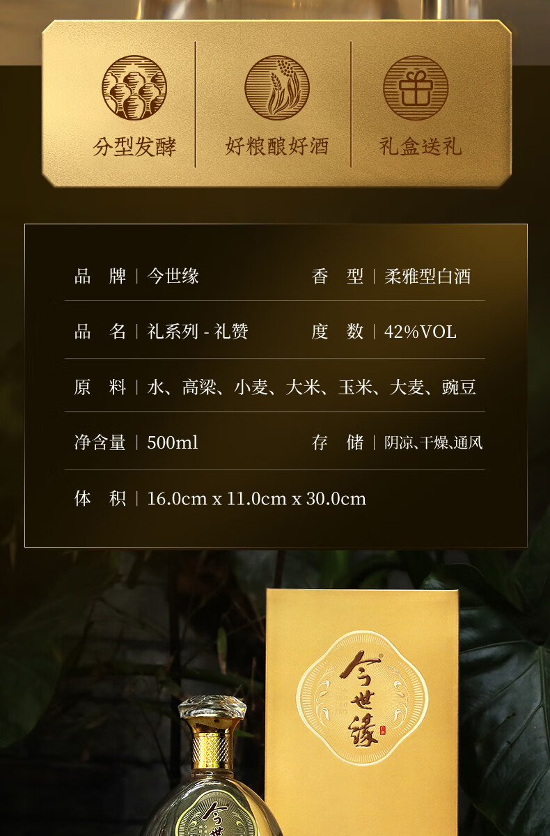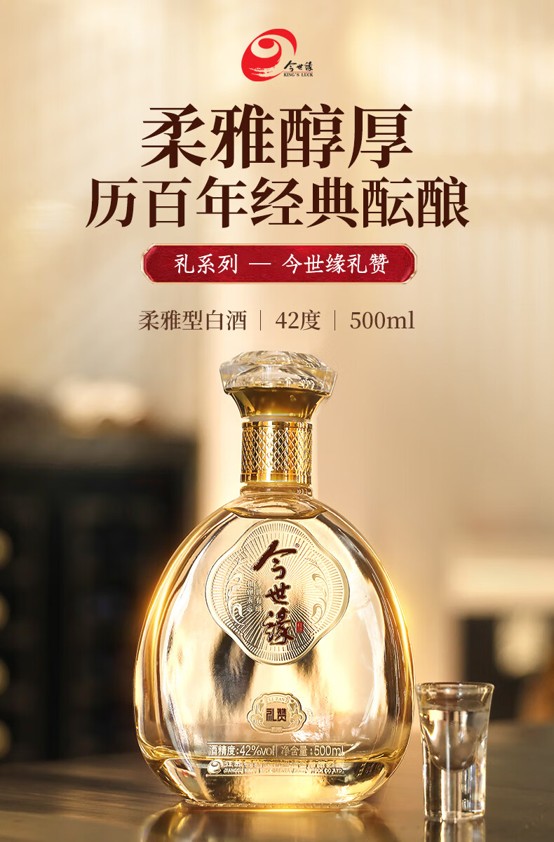 今世缘 礼赞 42度 浓香型白酒 婚宴送礼团聚 500ml*4瓶 整箱装