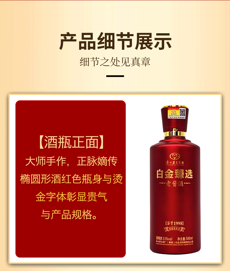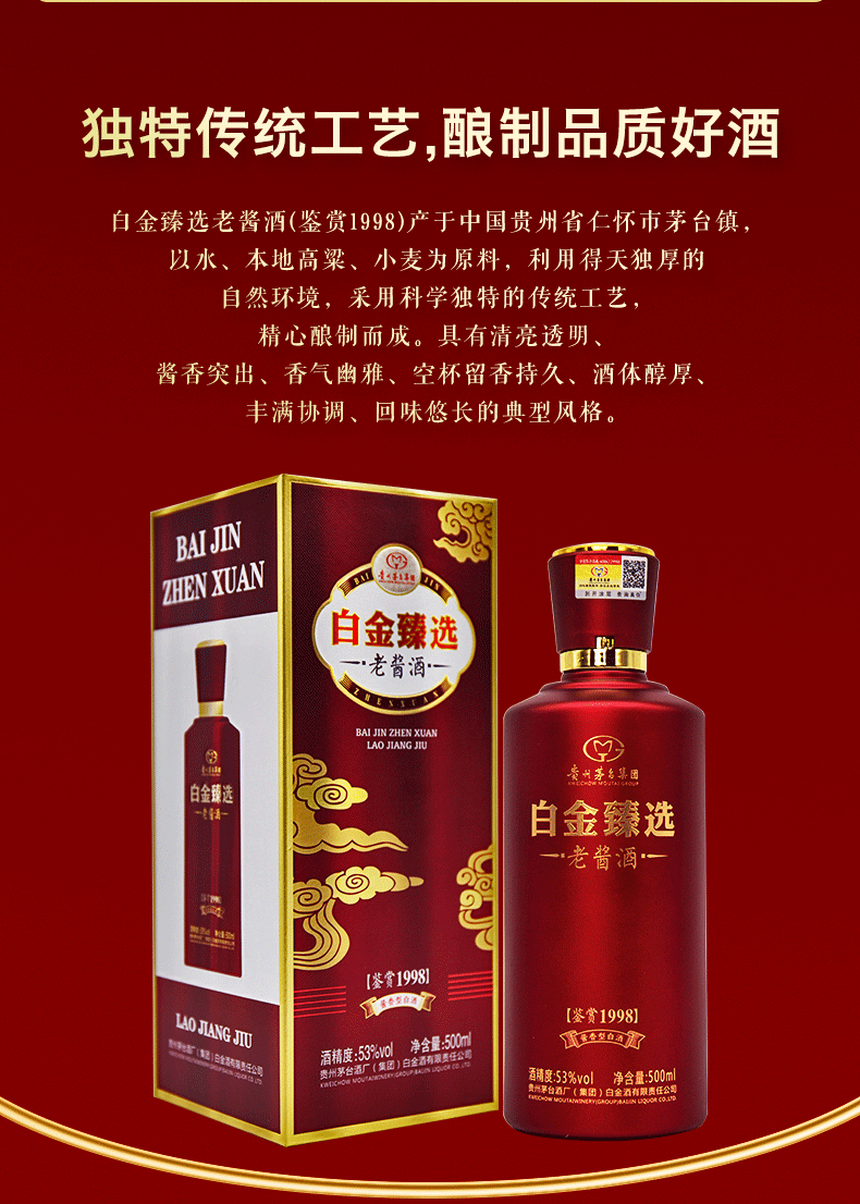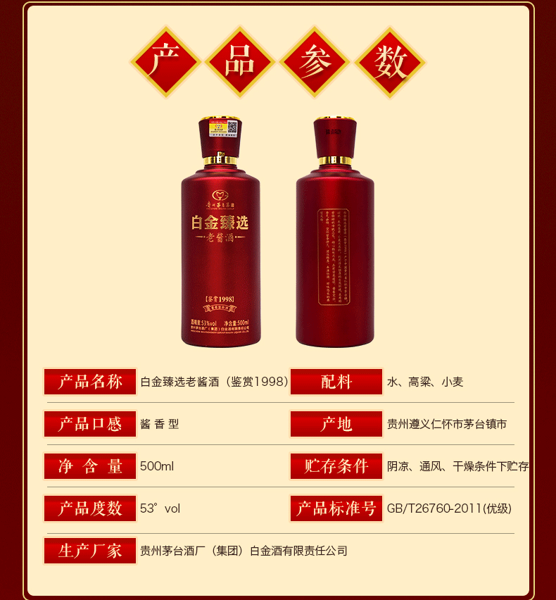 茅台集团 白金臻选老酱酒 鉴赏1998【2019年】53度 酱香型白酒 中秋送礼 喜事婚宴 500mL*6瓶 整箱