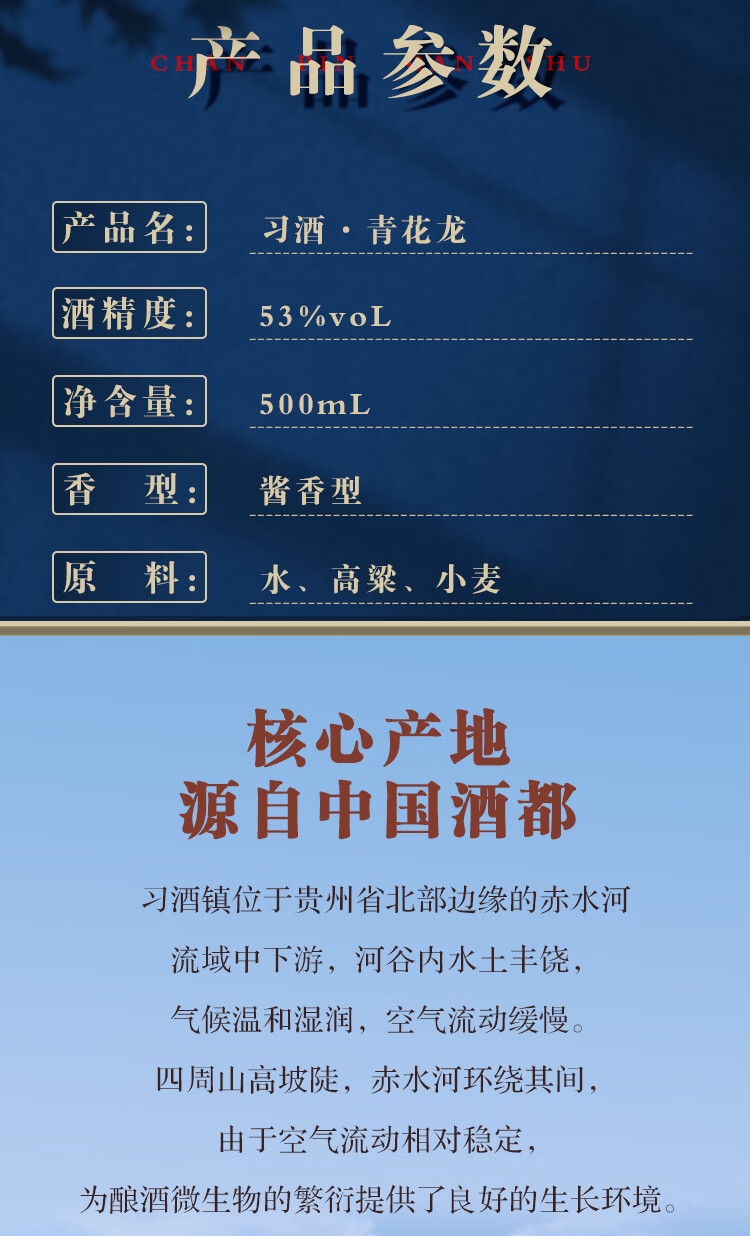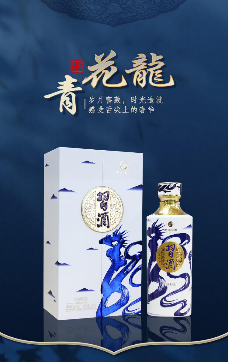 贵州习酒 青花龙 53度 酱香型白酒 粮食酿造 商务宴请 收藏摆柜 送礼佳品 500ml*6瓶 整箱