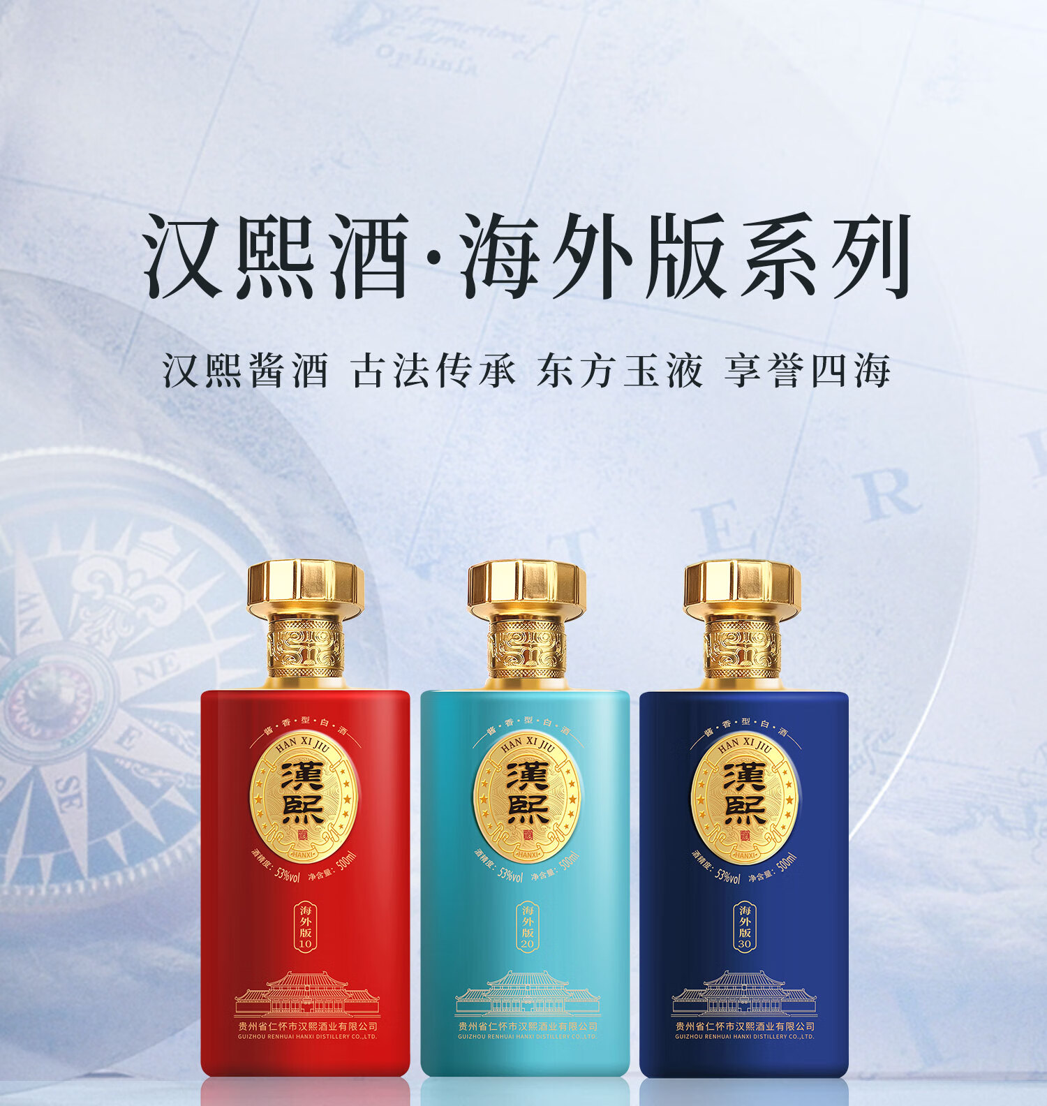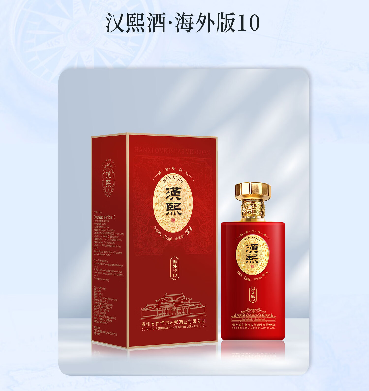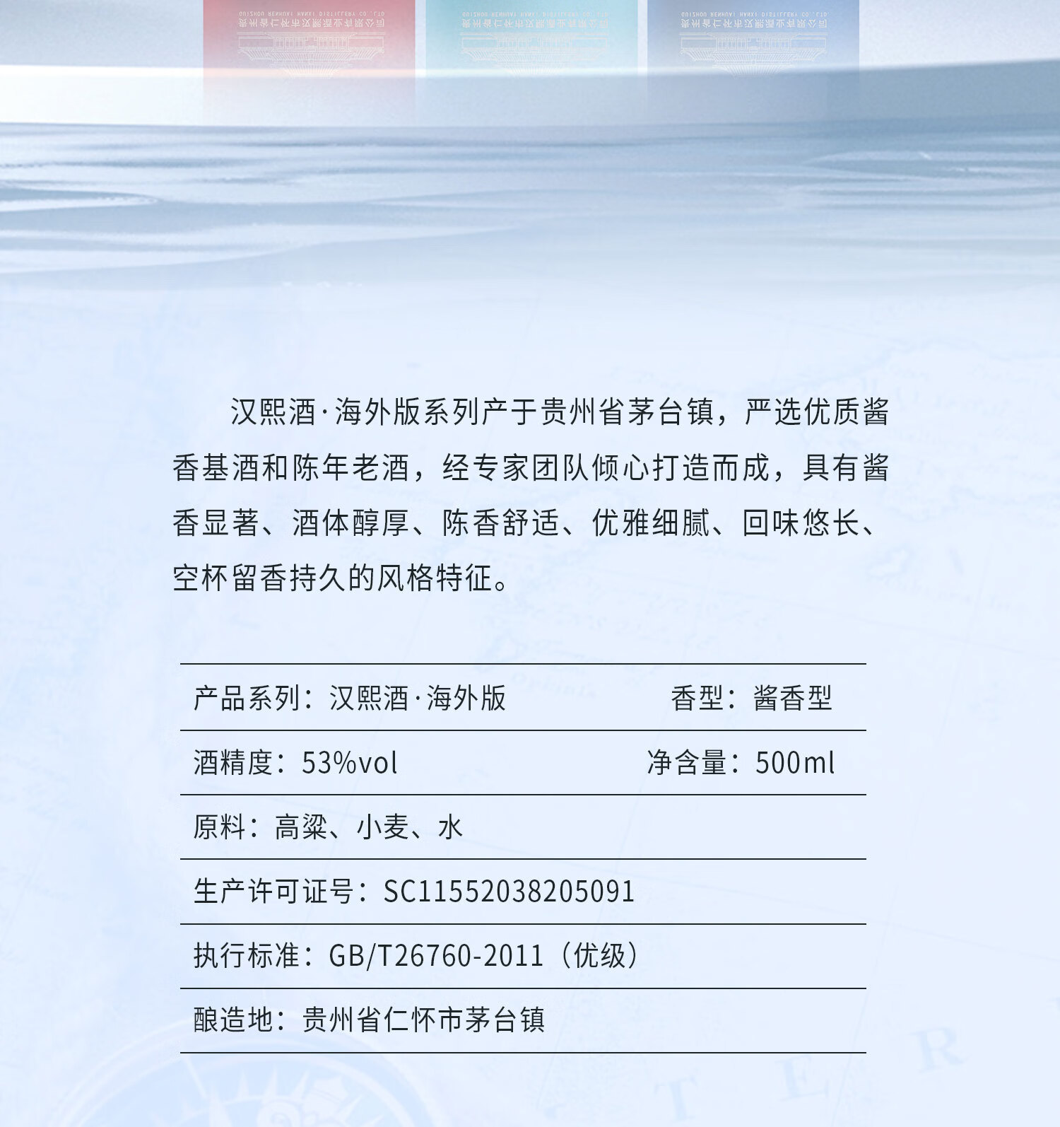 贵州茅台镇 汉熙酒 海外版20 53度 酱香白酒 大曲坤沙 纯粮食酿造 500ml*6瓶 整箱