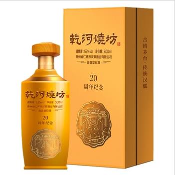贵州茅台镇 漢熙 乾河烧坊酒 20周年纪念版 53度 酱香白酒 大曲坤沙纯粮食酿造 500ml*6瓶 整箱