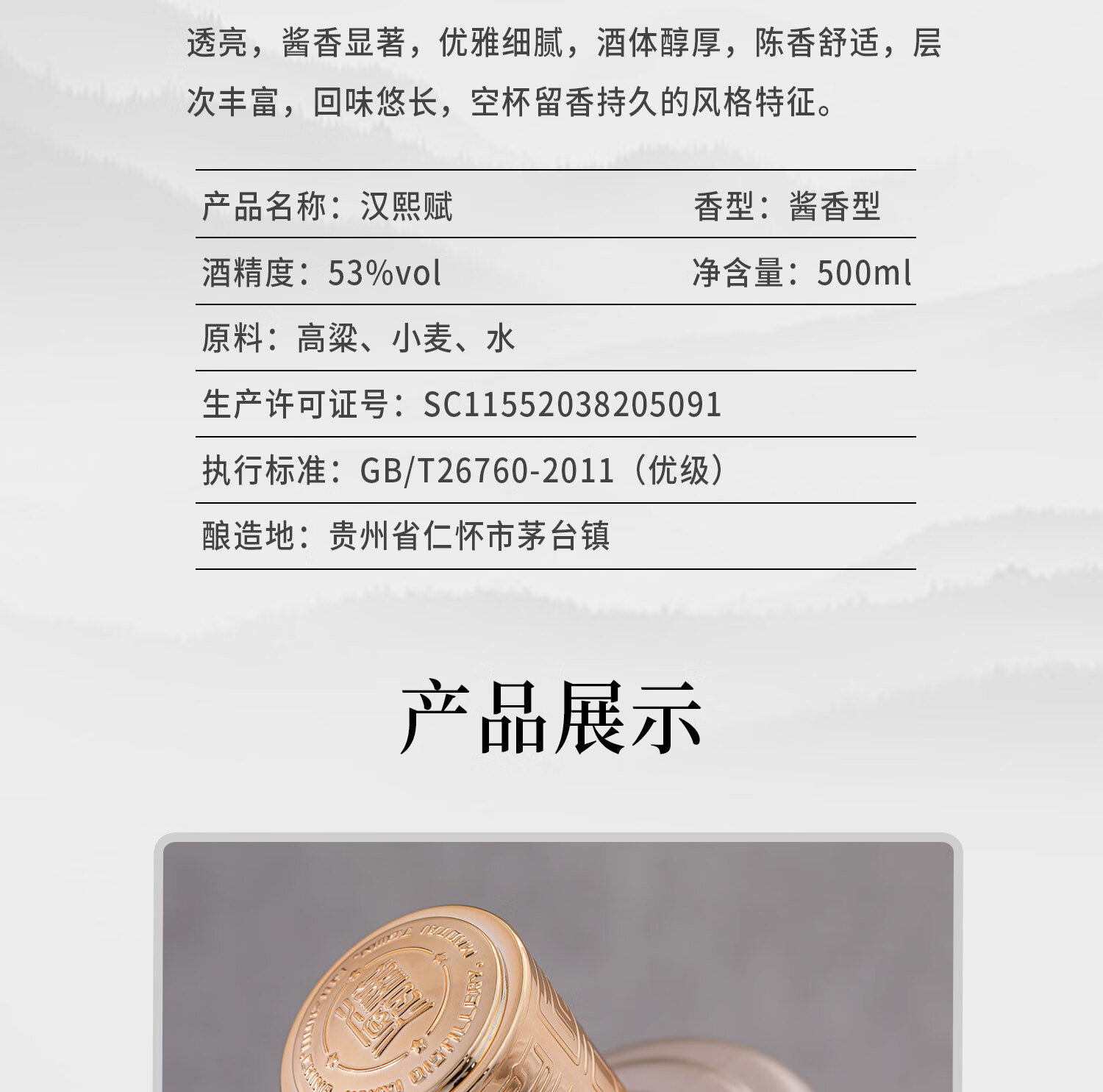 贵州茅台镇 漢熙 汉熙赋 53度 酱香白酒 粮食酿造 500ml*6瓶 整箱