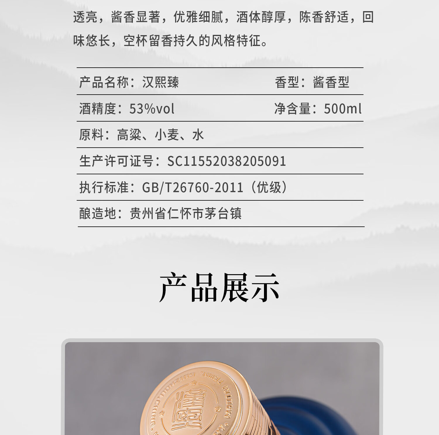 贵州茅台镇 漢熙 汉熙臻 53度 酱香白酒 粮食酿造 500ml*6瓶 整箱