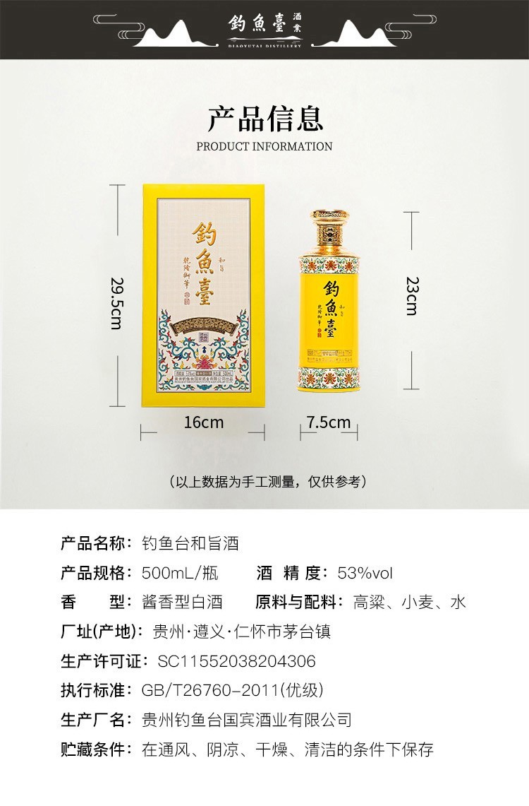 贵州茅台镇 钓鱼台 和旨酒 53度 酱香型白酒 节日礼盒粮食酒收藏 500ml*6瓶 整箱