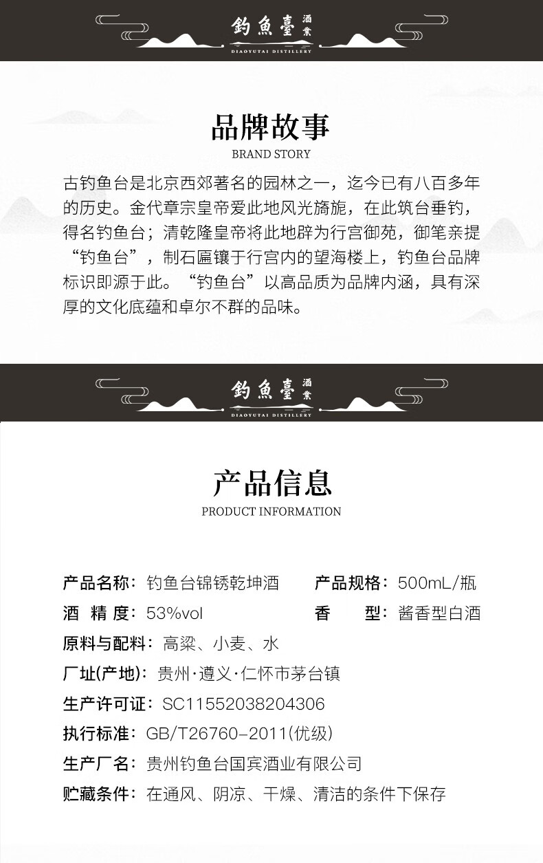 贵州茅台镇 钓鱼台 锦锈乾坤酒 53度 酱香型白酒 礼品酒水粮食酒 500mL*6瓶 整箱