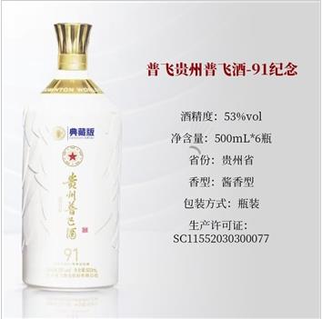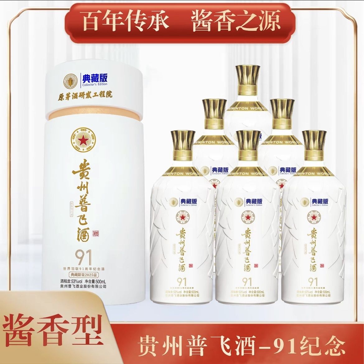 贵州普飞酒 91纪念 53度 酱香型白酒 送礼收藏自饮 500ml*6瓶 整箱装