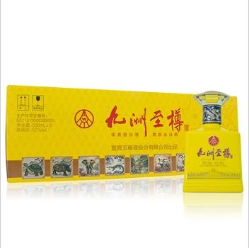 五粮液股份出品 九洲至樽 52度 浓香型白酒 收藏 送礼 500ml*9瓶 整箱装