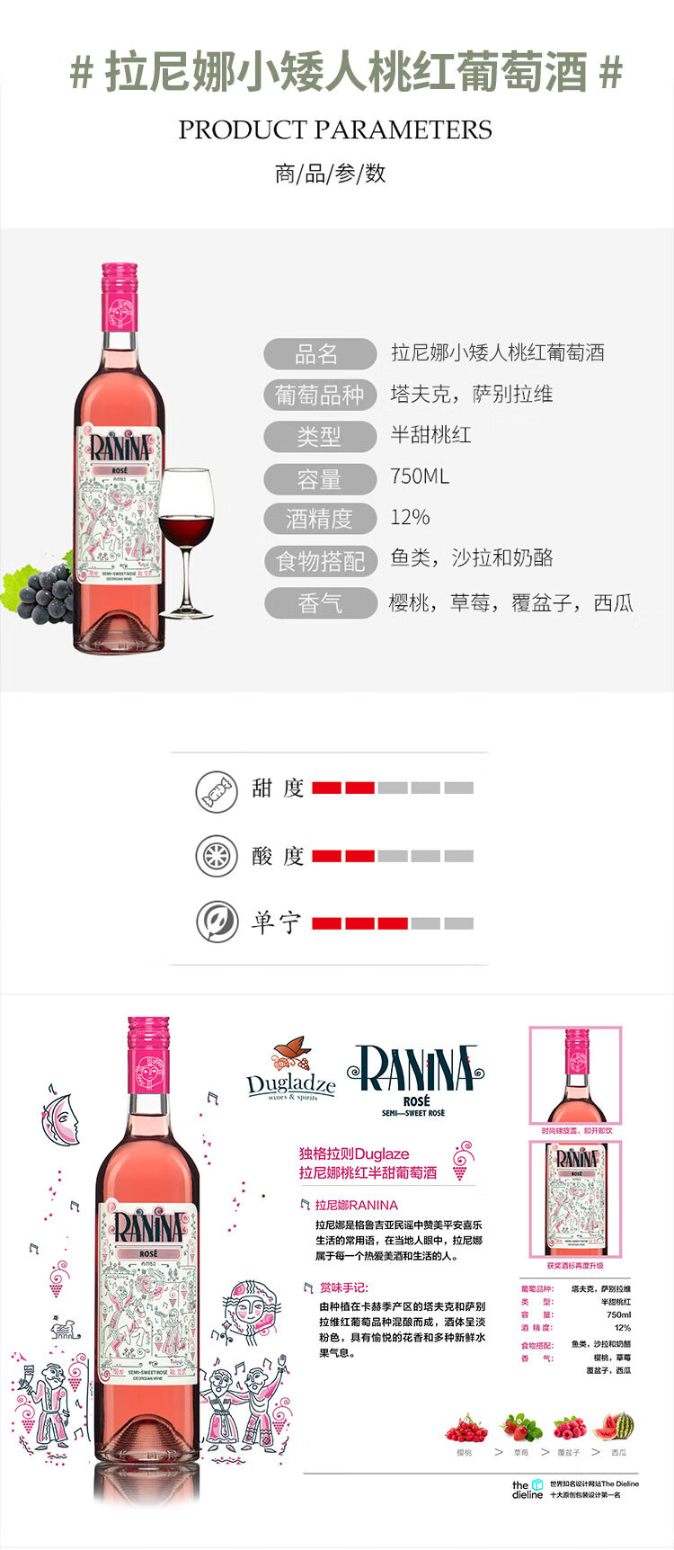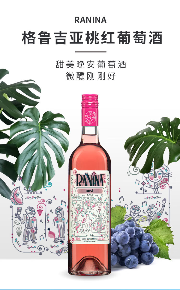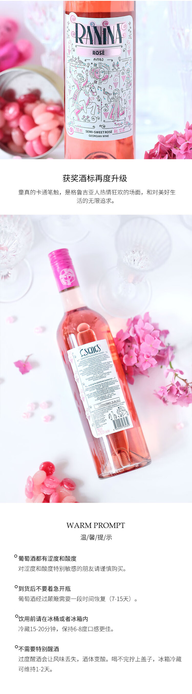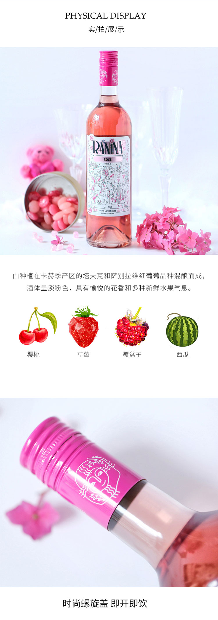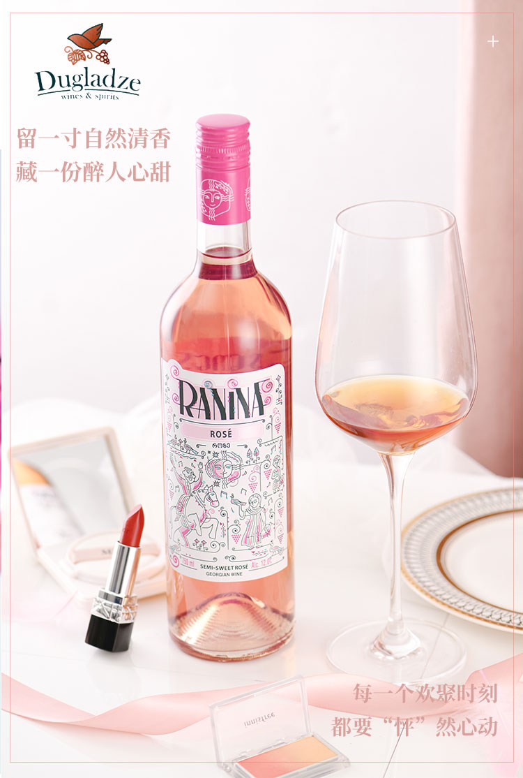 拉尼娜小矮人 格鲁吉亚 原瓶进口 半甜桃红葡萄酒 女士甜酒 12%VOL 750ml*6瓶 整箱