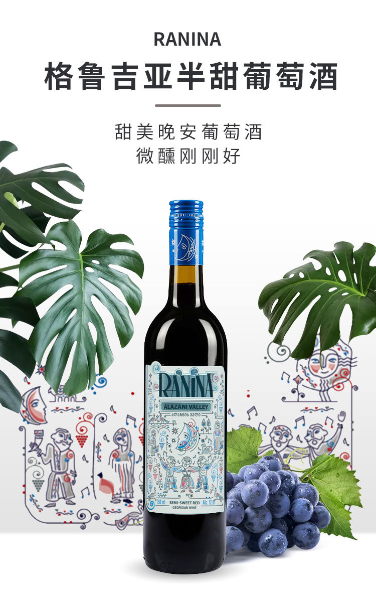 拉尼娜小矮人 格鲁吉亚 原瓶进口红酒 半甜红干红葡萄酒 12%VOL 750ml*6瓶 整箱