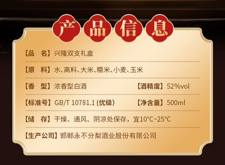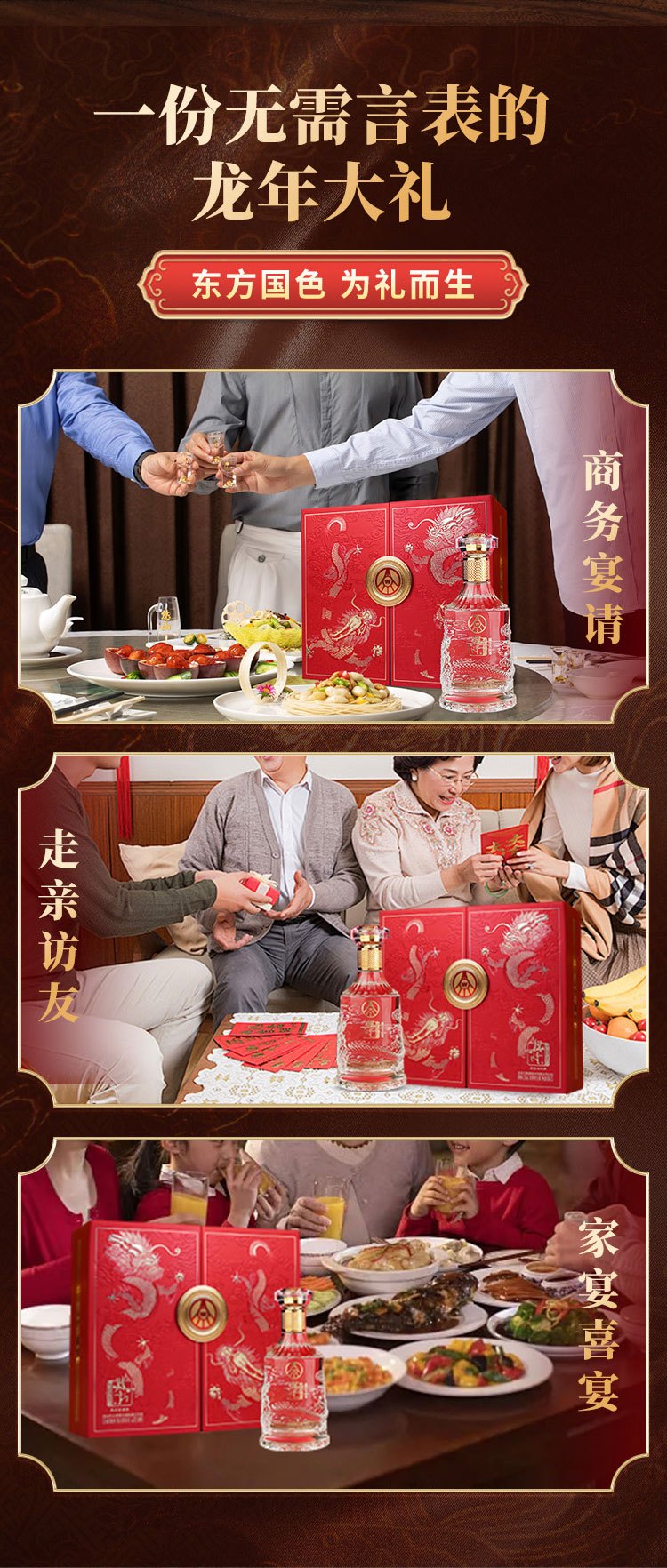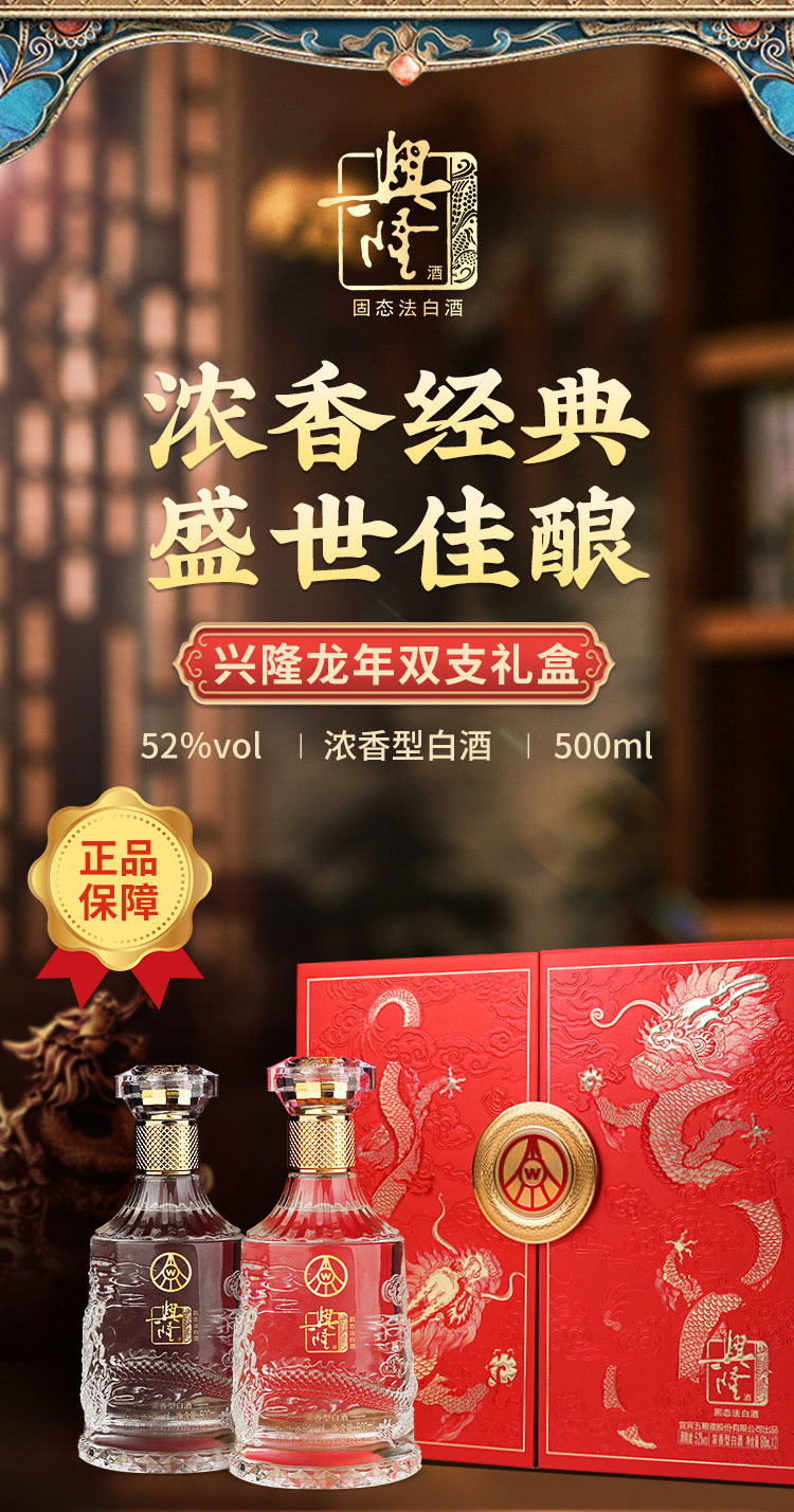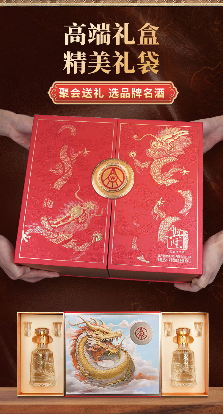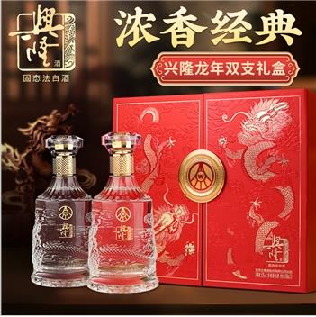 五粮液股份公司出品 兴隆龙年双支礼盒 52度 浓香型白酒 优级酒质 送礼自饮酒 500mL*2瓶*3盒 整箱
