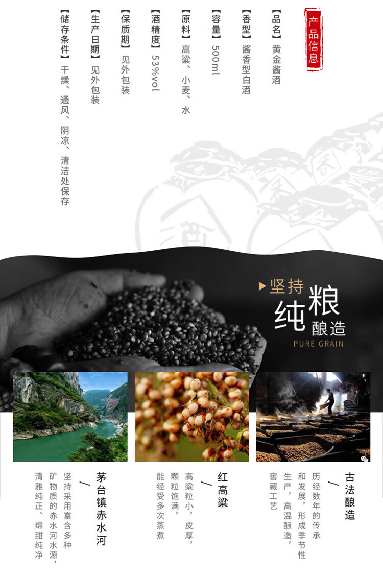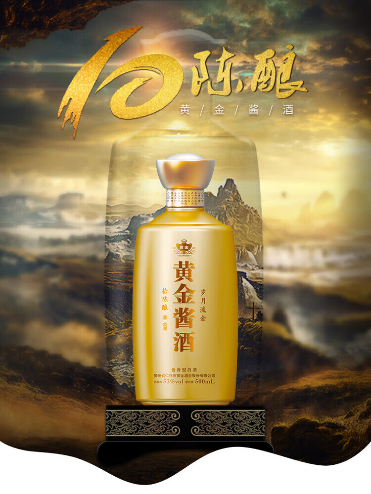 贵州茅台镇 黄金酱酒 拾陈酿酒 53度 酱香型纯粮白酒 500ml*6瓶 整箱