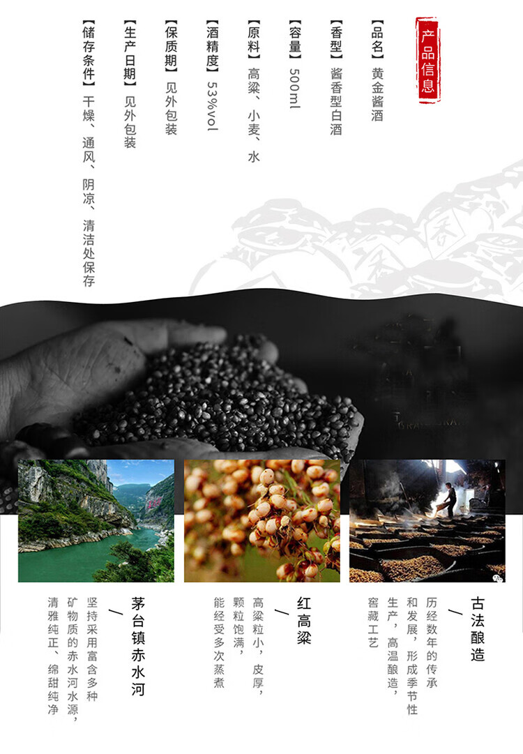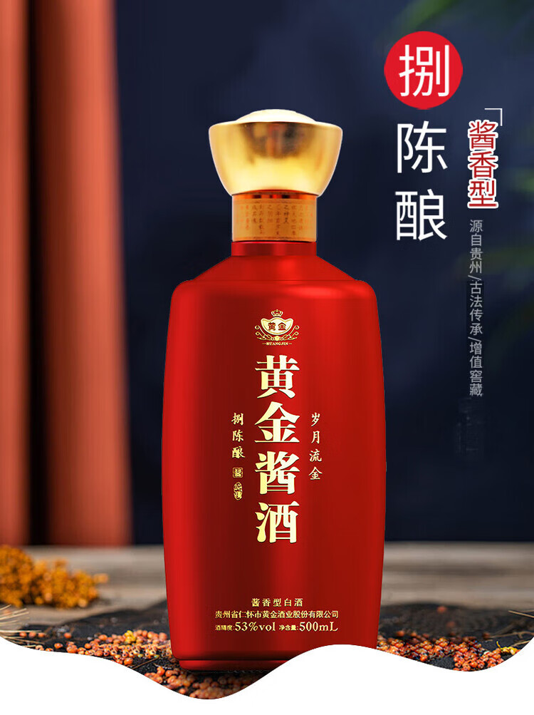 贵州茅台镇 黄金酱酒 捌陈酿酒 53度 酱香型纯粮白酒 500ml*6瓶 整箱