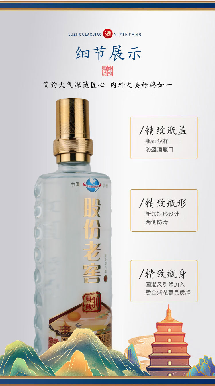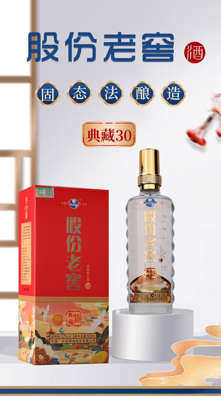中国泸州頭曲股份有限公司出品 股份老窖 典藏30 52度 浓香型白酒 纯粮固态发酵 500ml*6瓶 整箱