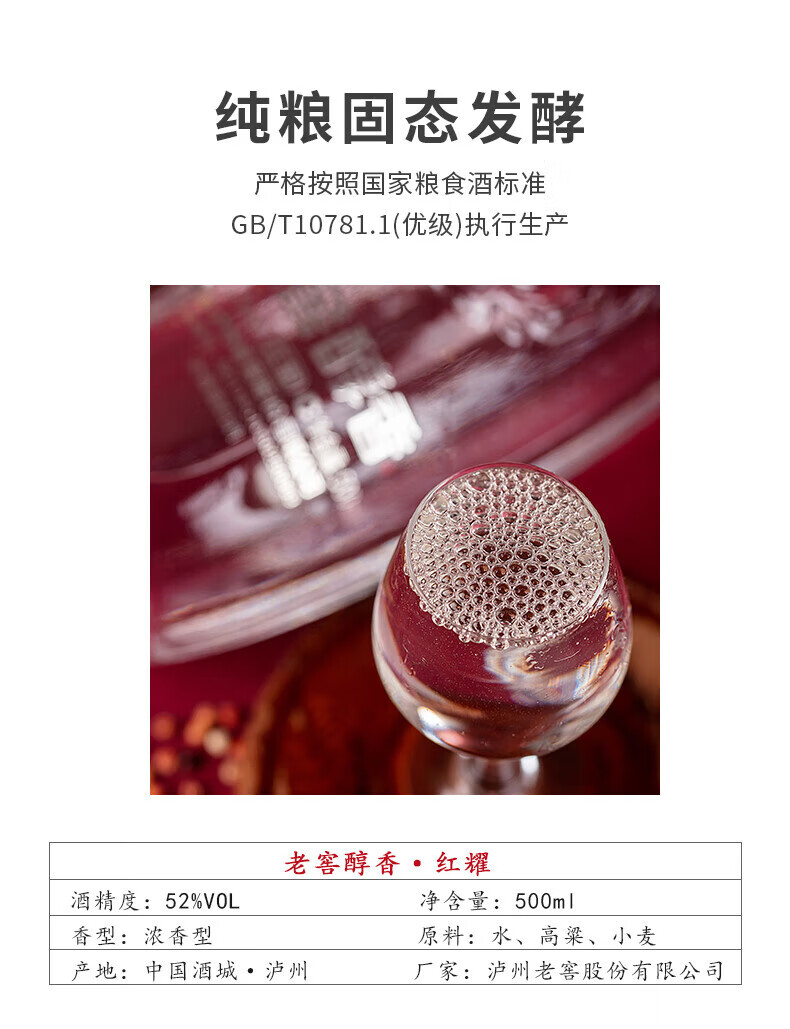 四川泸州老窖 醇香红耀 52度 浓香型白酒 纯粮酿造 送礼宴请优选 500mL*6瓶 整箱